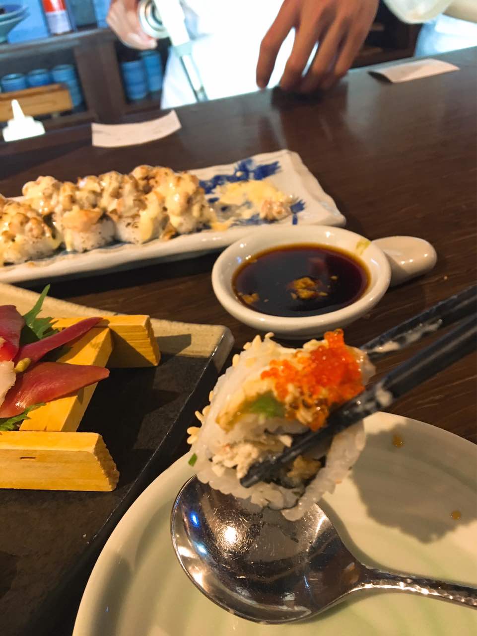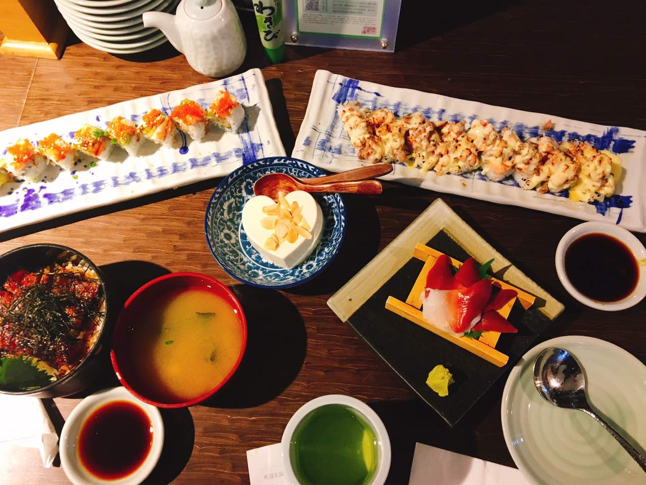 真的超级好吃。寿司届的爱马仕比一百个心❤️牛油果鲜虾卷和海鲜芝士卷强推是真的好吃 鳗鱼饭也不腥 中份一个人吃也够够的 杏仁豆腐更是没话说 没吃过这么浓稠的 坐在边上的一对日本夫妇都连夸好吃!点评里说比京都当地做的都好吃看来一点都不夸张!刺身最爱北极贝 也是很新鲜~完美的一次邂逅