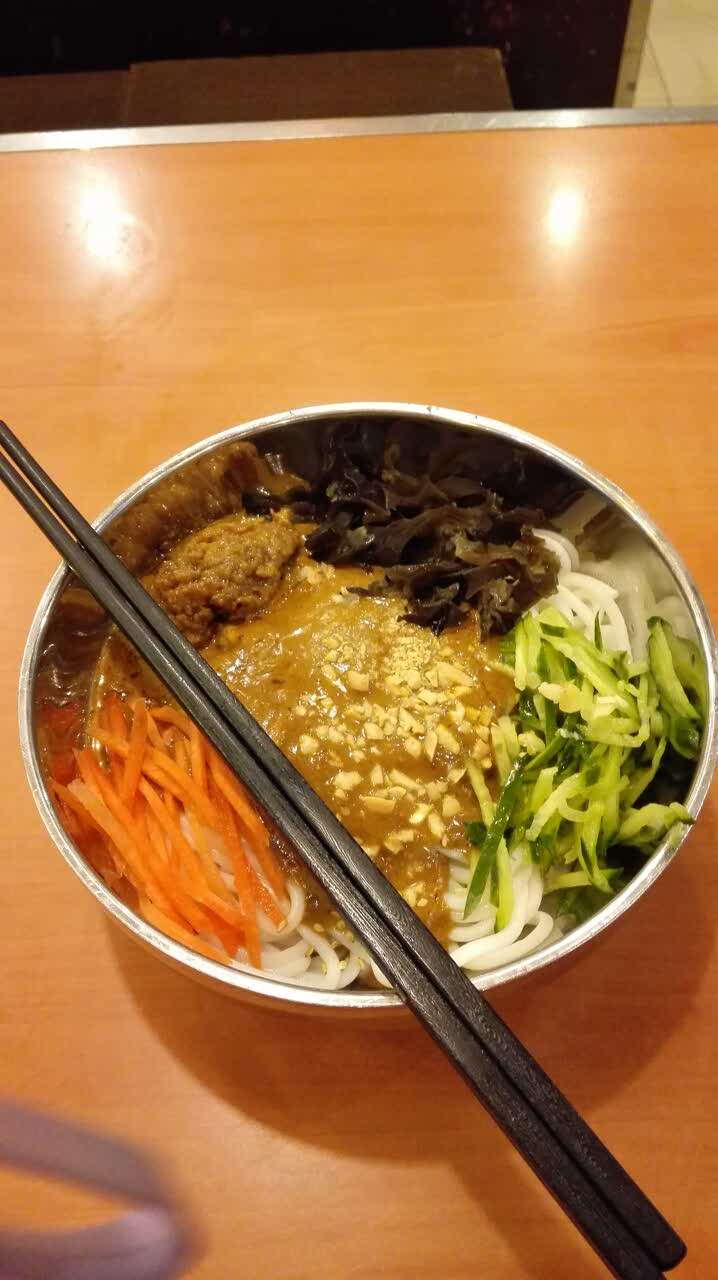 店在701终点站对面边上,店内环境挺好,店里放着淡淡的《小情歌》,好听!我点的是拌米线