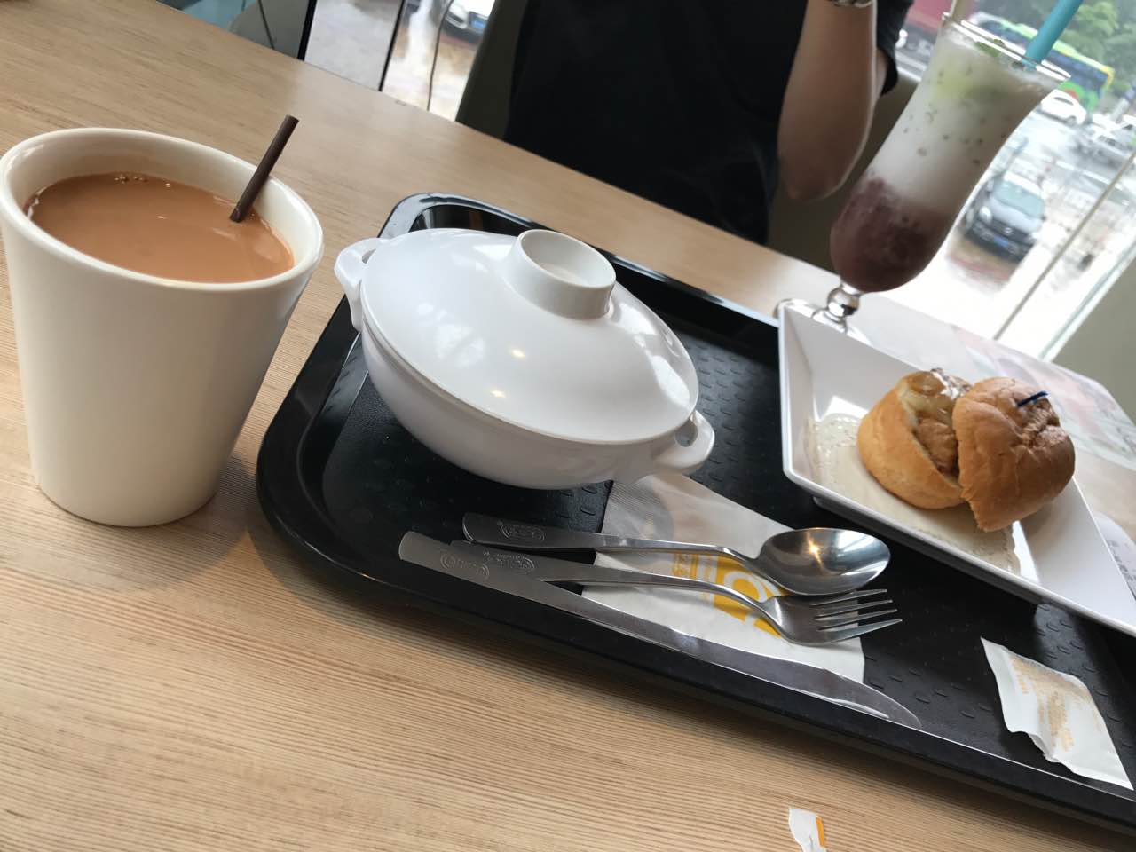 下午茶不错的选择,可能人太多点的雪菜米粉没有雪菜了,但不影响啦。猪扒包比较普通,还好