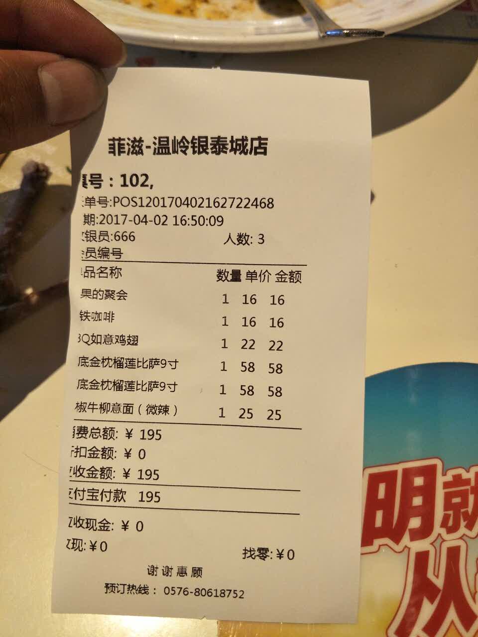 查看更多菲滋意式餐厅(温岭银泰城店)点评 >