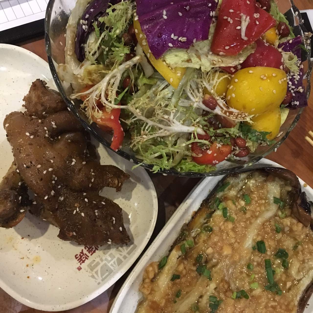 生蚝不错,猪蹄太辣但是超好吃,为什么没有不辣的,不吃辣星人很难过鸡皮有冷冻的味道草原大拌菜酸酸...金针菇就是加酱油水煮,难吃鸡翅太瘦,生蚝不错,猪蹄太辣但是超好吃,为什么没有不辣的,不吃辣星人很难过鸡皮有冷冻的味道草原大拌菜酸酸的,味道还可以~