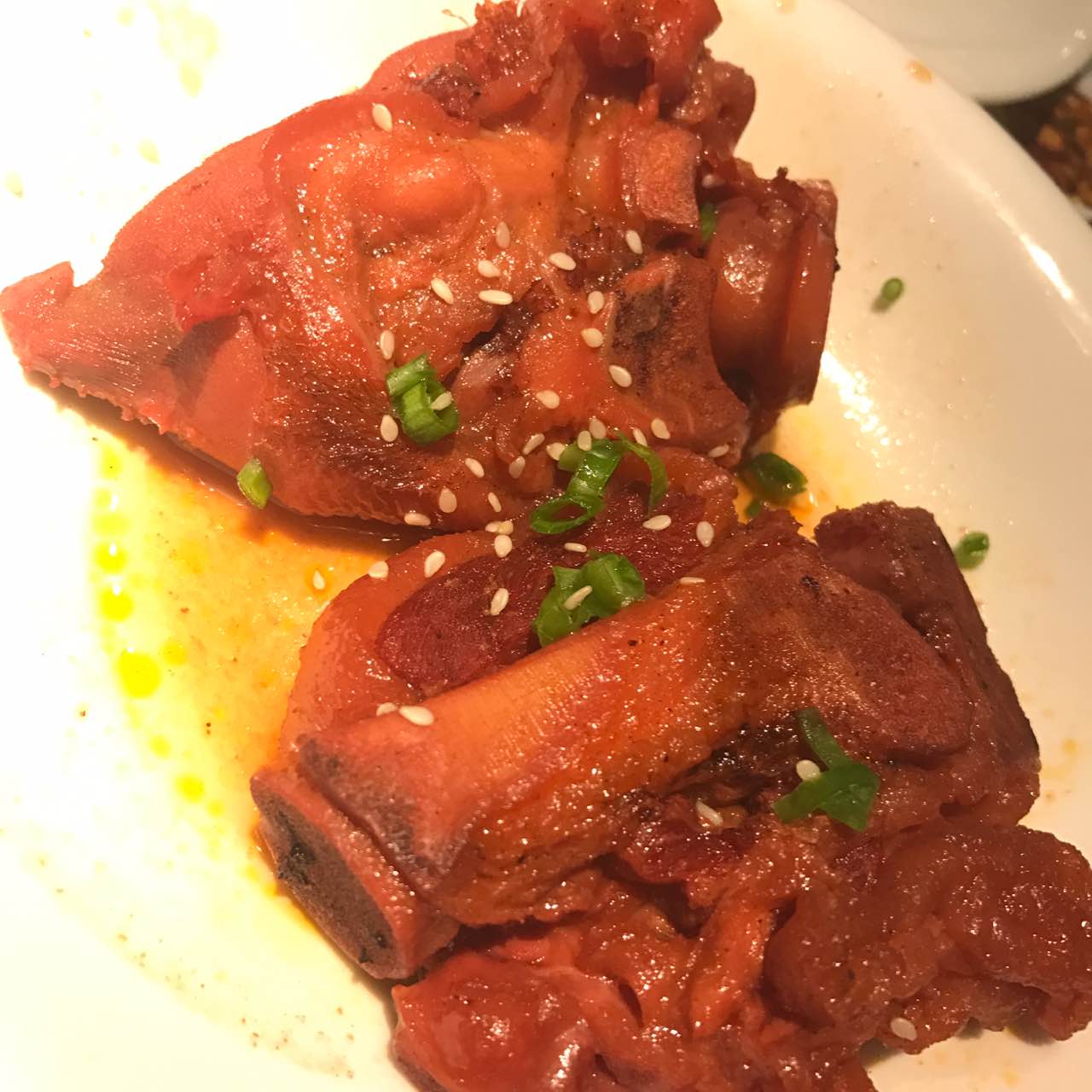 口味也不错 点的泡椒田鸡中辣也还好辣 喜欢的是配菜还挺多~猪手很软糯 就是有点味道 要是带点微...菜品分量很足 口味也不错 点的泡椒田鸡中辣也还好辣 喜欢的是配菜还挺多~猪手很软糯 就是有点味道 要是带点微辣就更好了