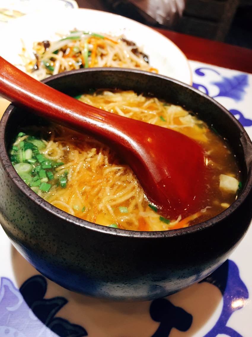 满园春饼(水游城店)装潢古色古香,喜庆吉祥。从装潢到服务无不流露着满族风情。服务员口中讲着各种吉祥话,满堂欢声笑语。烤鸭肉肥皮脆,春饼薄而有韧性。东北大拉皮上桌极富表演色彩,酱料调制得很独特,回味无穷。炒合菜卷春饼是店里必点的菜。二小胡同素烩汤里炸过的饼丝使这道汤别有风味