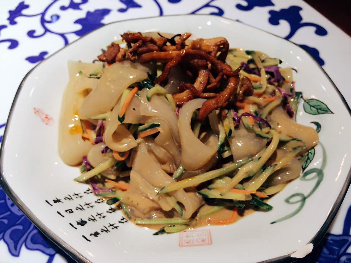 东北大拉皮上桌极富表演色彩,酱料调制得很独特,回味无穷。炒合菜卷春饼是店里必点的菜