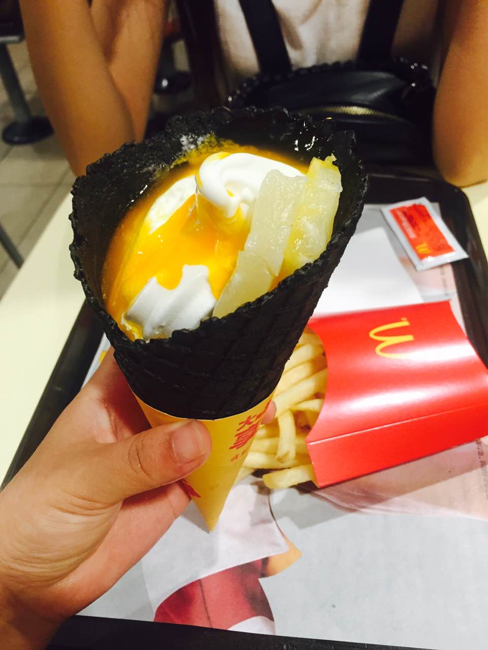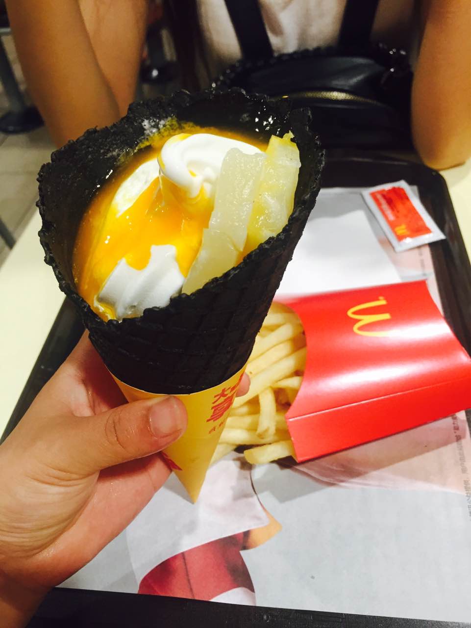 点了新品冰淇淋和大鸡翅,还没有薯条和麦辣鸡翅好吃,麦当劳还是老品种好吃呀
