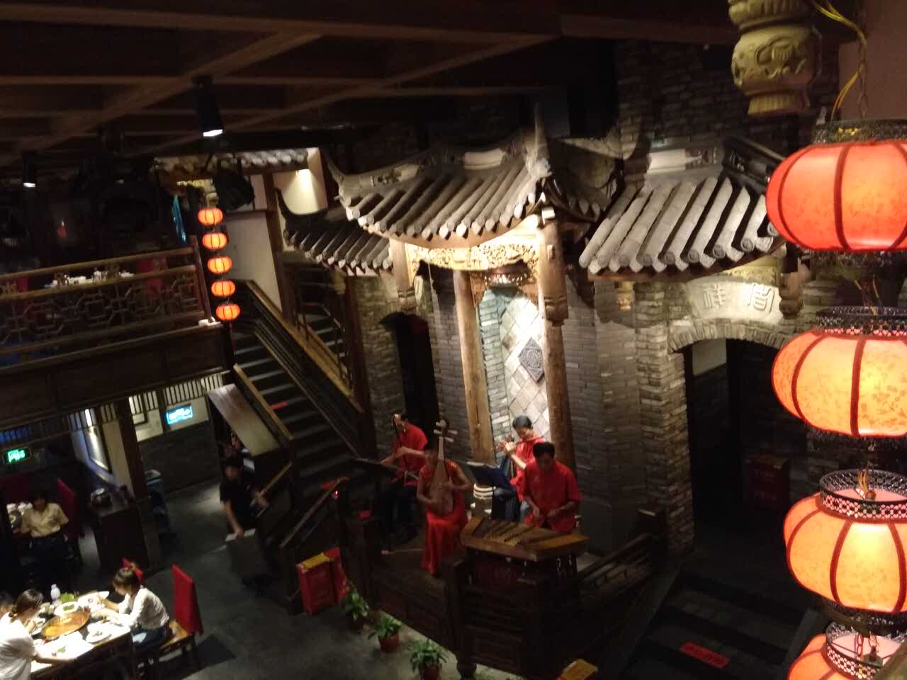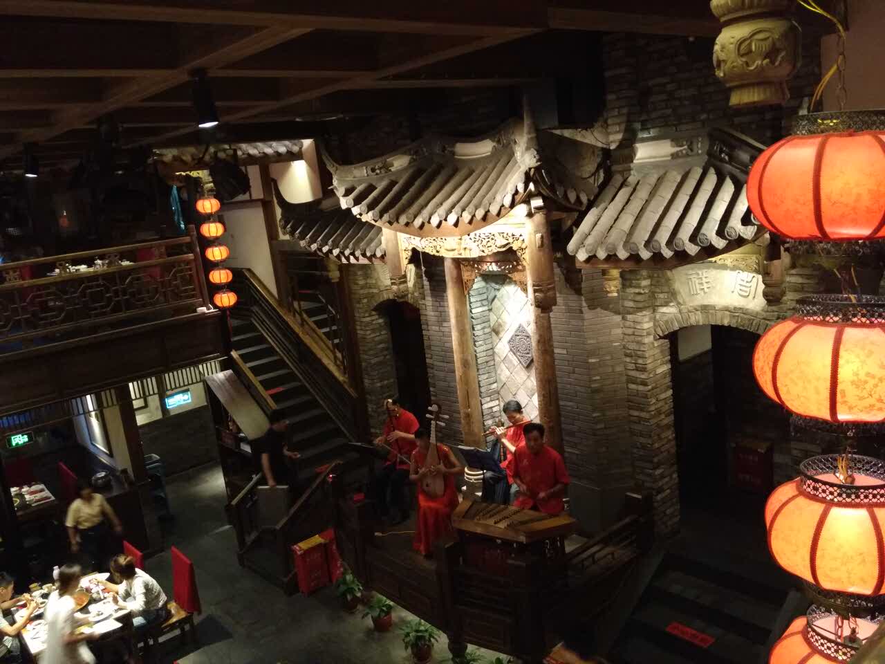 仿古建筑;红灯笼高挂;节目活动鲜颖;火锅红运冰豆爽爽