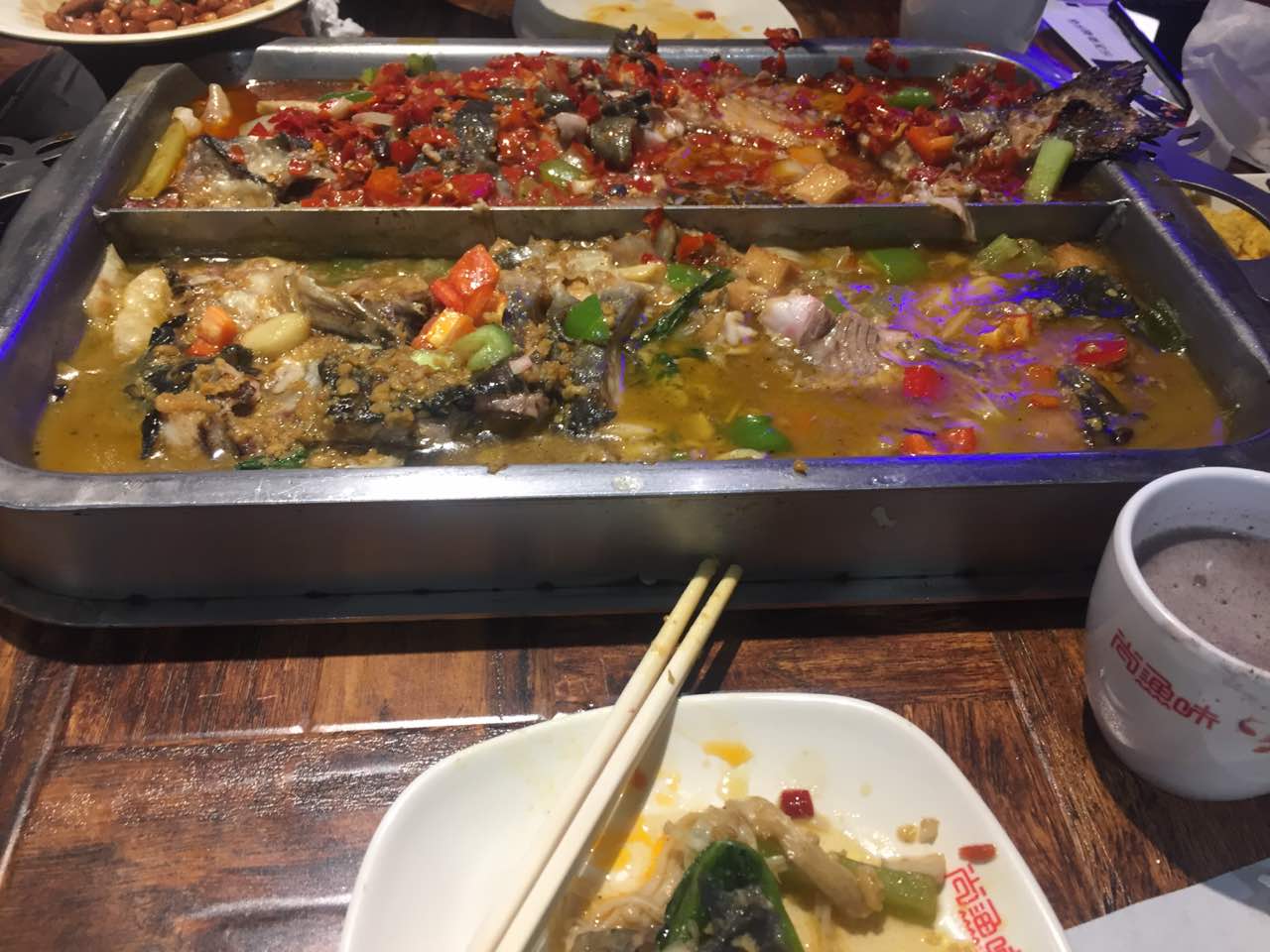 情人节人超级多 去的比较晚 鱼都没什么了 服务员态度挺好~环境还是不错的 ~