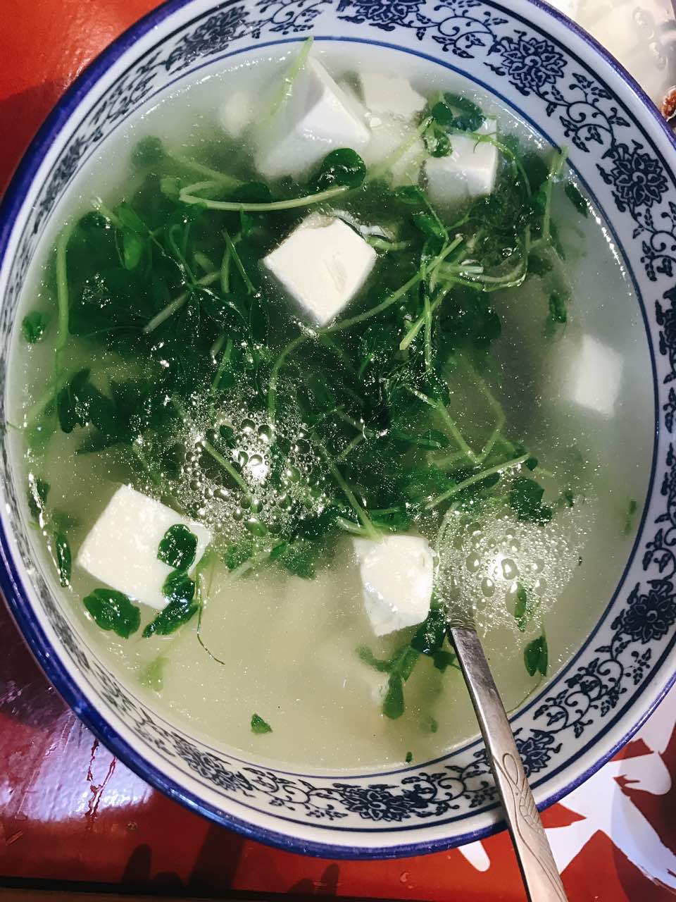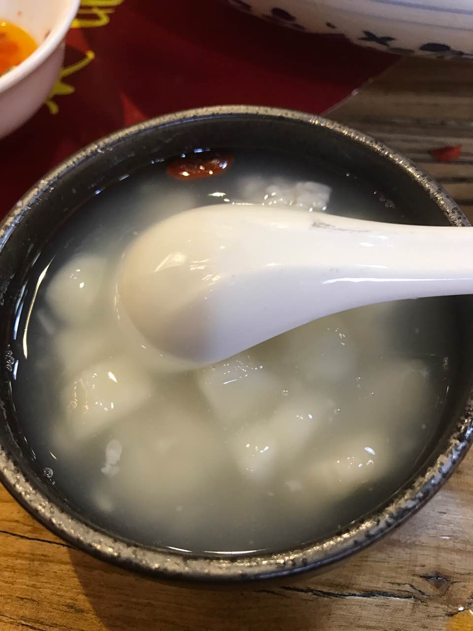 豆苗豆腐汤口味清淡不错,鱿鱼须和鱼头分量足,就是鱿鱼丝不太入味,所以最后大部分打包回家,准备再加工豆苗豆腐汤口味清淡不错,鱿鱼须和鱼头分量足,就是鱿鱼丝不太入味,所以最后大部分打包回家,准备再加工。鱼头一开始没熟,再回炉蒸了一下,味道还行。酒酿圆子小小份,还行。