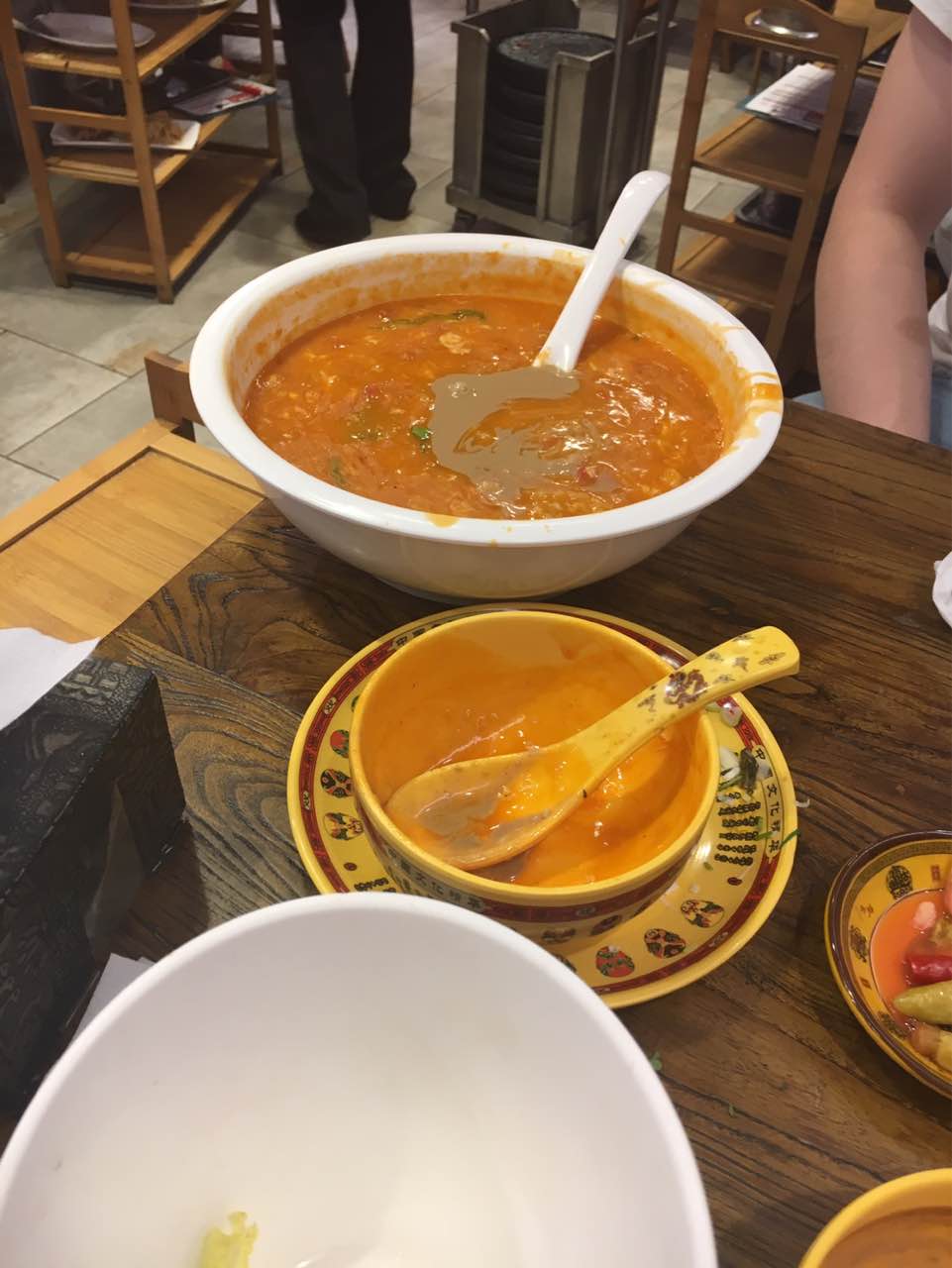 ...吃的面疙瘩,醉了,清汤锅底就是白开水说白了放点大葱香料啥的,真心不好吃,难怪好多人都点了烤肉呢从来没吃过这么大碗又难吃的面疙瘩,醉了,清汤锅底就是白开水说白了放点大葱香料啥的,真心不好吃,难怪好多人都点了烤肉呢!明智的选择啊!