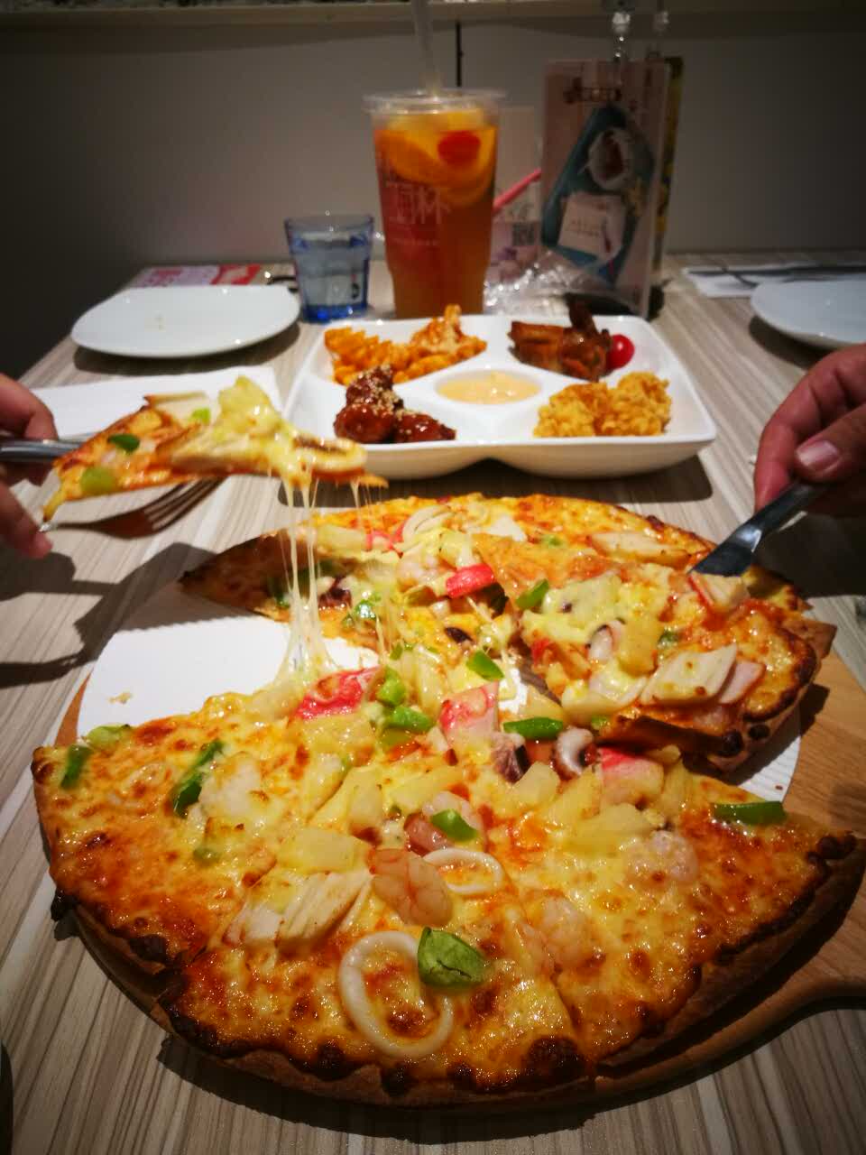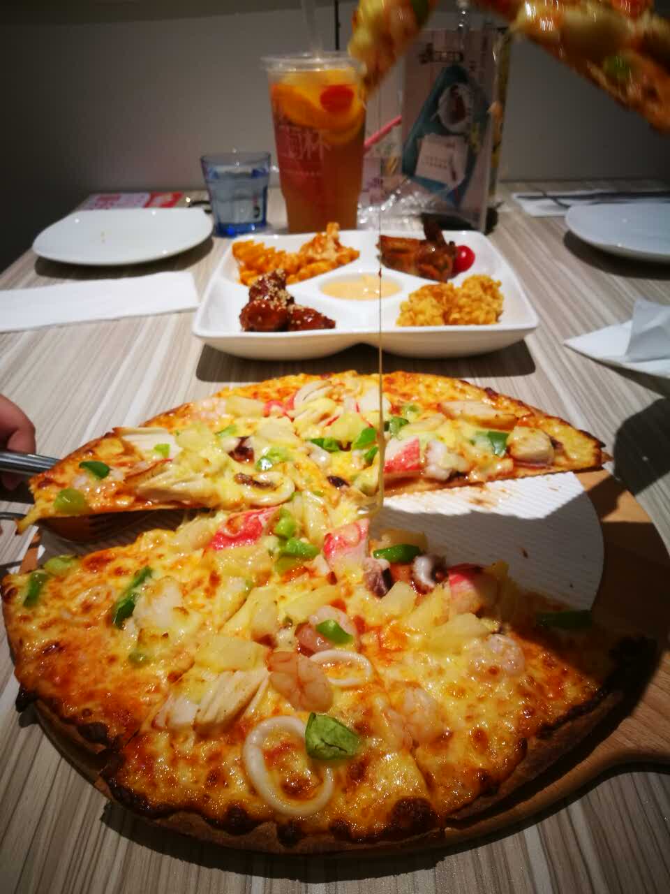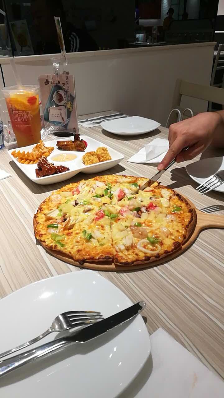 店内环境不错。披萨味道不错。服务态度也很好。只是结账时的服务员太毛躁了。会员积分忘记给我积了