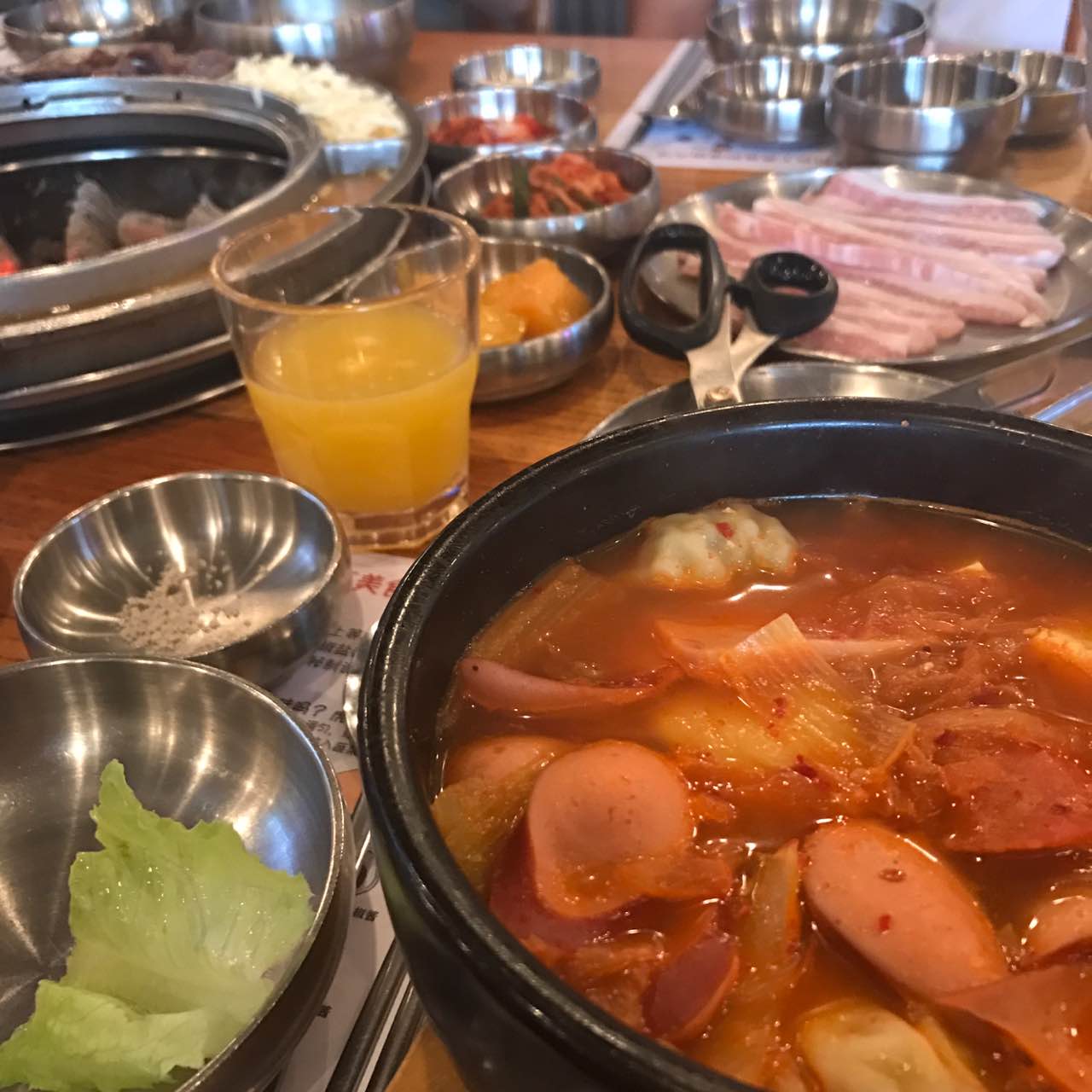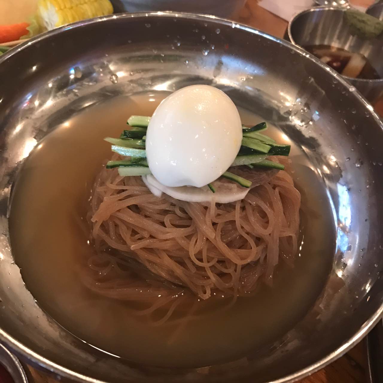 部队汤味道偏酸,冷面的面有点多,泡菜有海带好好吃,服务好好,空调给力!