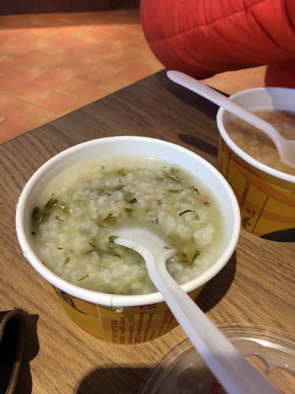 肯德基的稀饭真的是一绝,不知道是不是什么香精调出来的,儿子很爱吃