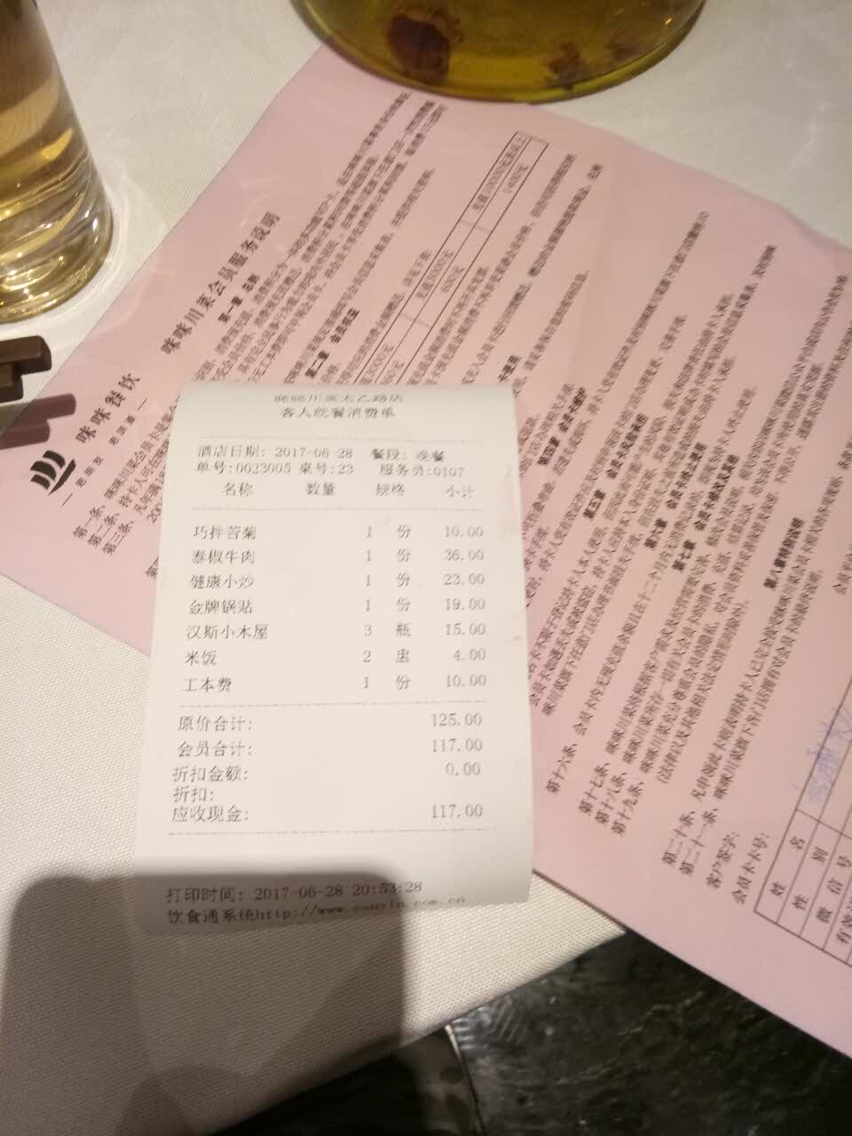 别人都没拍,我这吃光拍可以不,附上消费单,我和我同学都觉得菜好吃,很棒,还办了会员卡