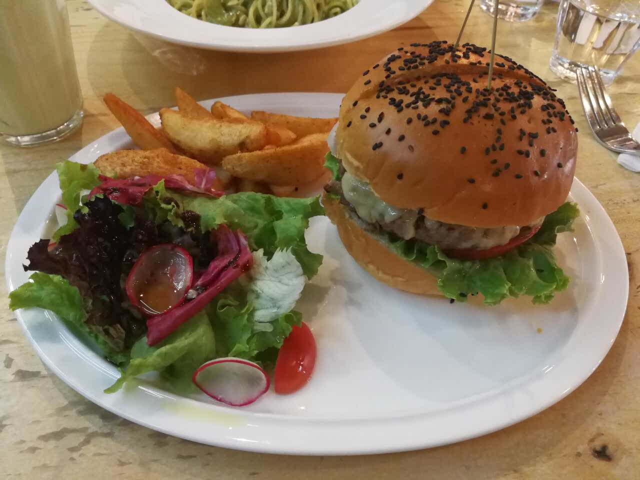 网友2017-07-19点了大家都推荐的招牌汉堡,青酱鸡肉意面,牛油果奶昔,甜菜根雪梨汁,还给儿子点了个芒果巴伐利亚当...点了大家都推荐的招牌汉堡,青酱鸡肉意面,牛油果奶昔,甜菜根雪梨汁,还给儿子点了个芒果巴伐利亚当做生日蛋糕,儿子吃的很开心~