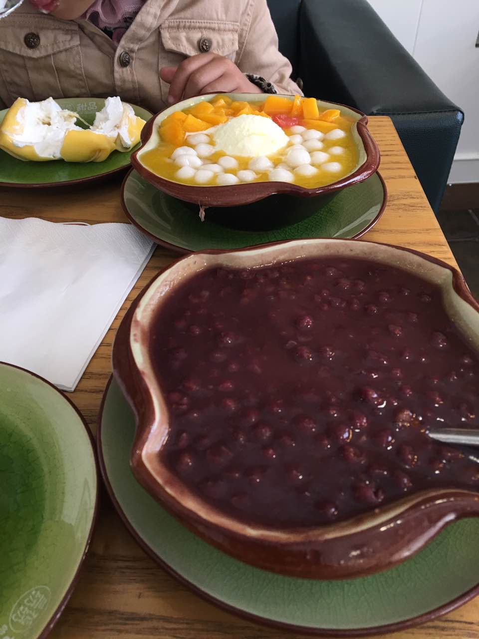 所以点的热豆沙,很好吃,豆沙很细,点了两个榴莲班戟,和宝宝一人一个,还给她点了个多芒小丸子,都很好吃天还不是很热,所以点的热豆沙,很好吃,豆沙很细,,点了两个榴莲班戟,和宝宝一人一个,还给她点了个多芒小丸子,都很好吃!