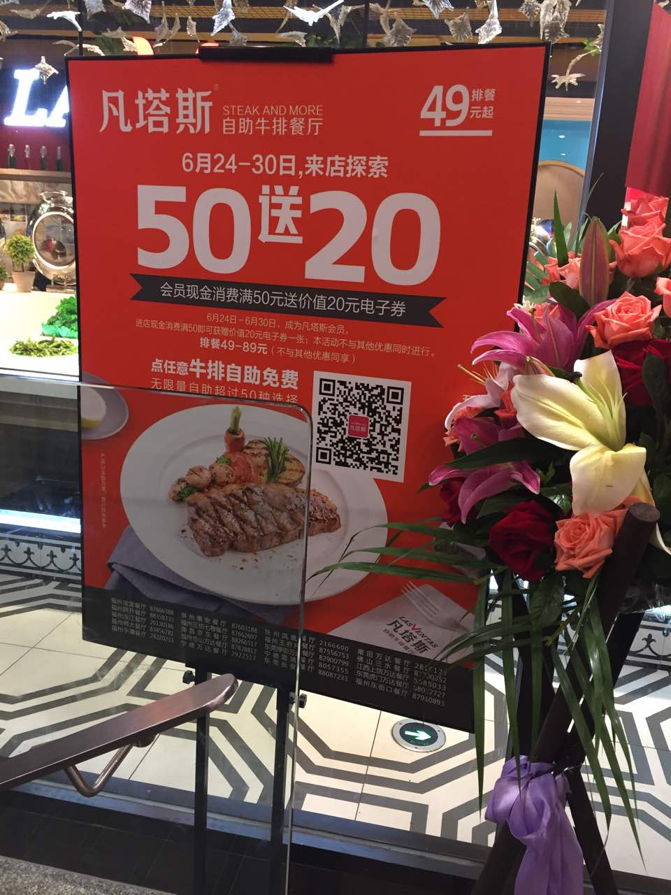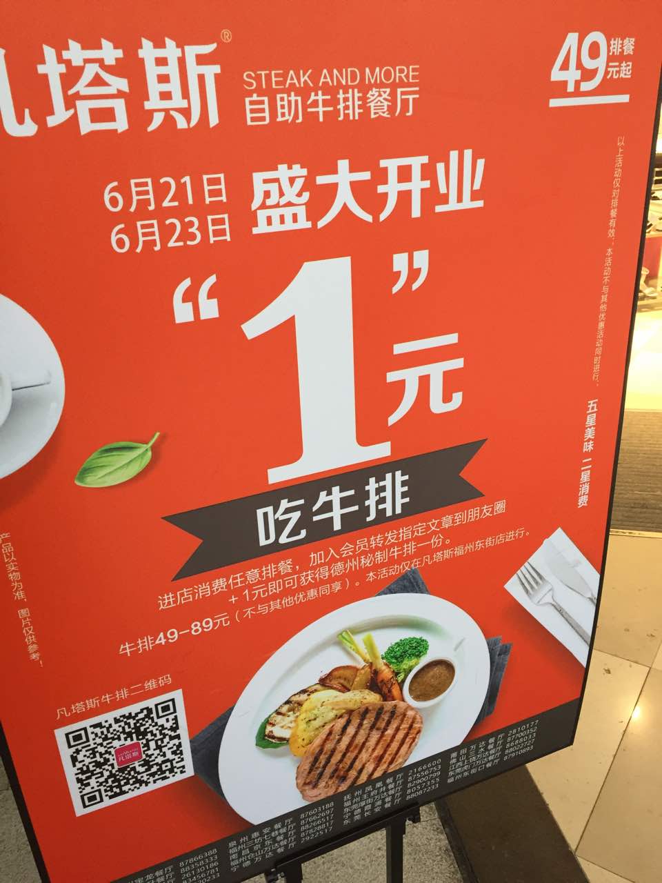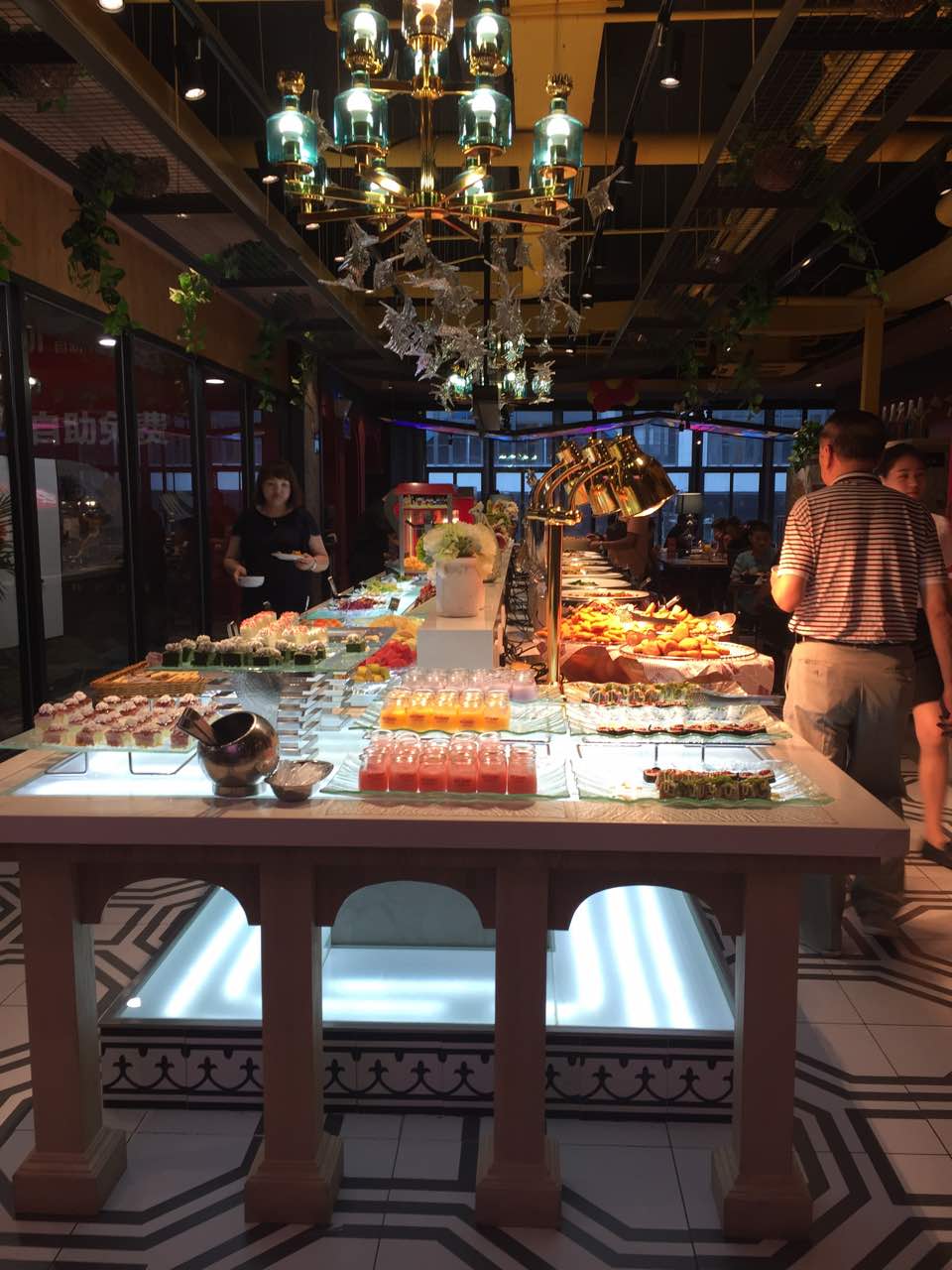 可以吃得久一些,时不时都有新品上来,可以吃到不同的菜品,牛排的自助区真是品种丰富可以吃得久一些,时不时都有新品上来,可以吃到不同的菜品,牛排的自助区真是品种丰富。东街口这家开业加一元送牛排好优惠呀!90cm以下孩子免费130半价,,孩子也可以单点自助。