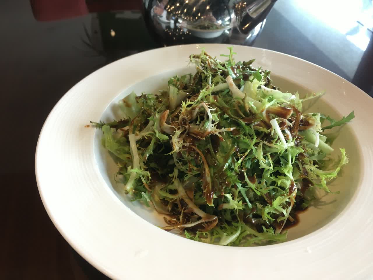 颜家生菜其实就是凉拌苦菊,口味儿挺不错酸酸甜甜的,好吃,只是略微太甜了一点