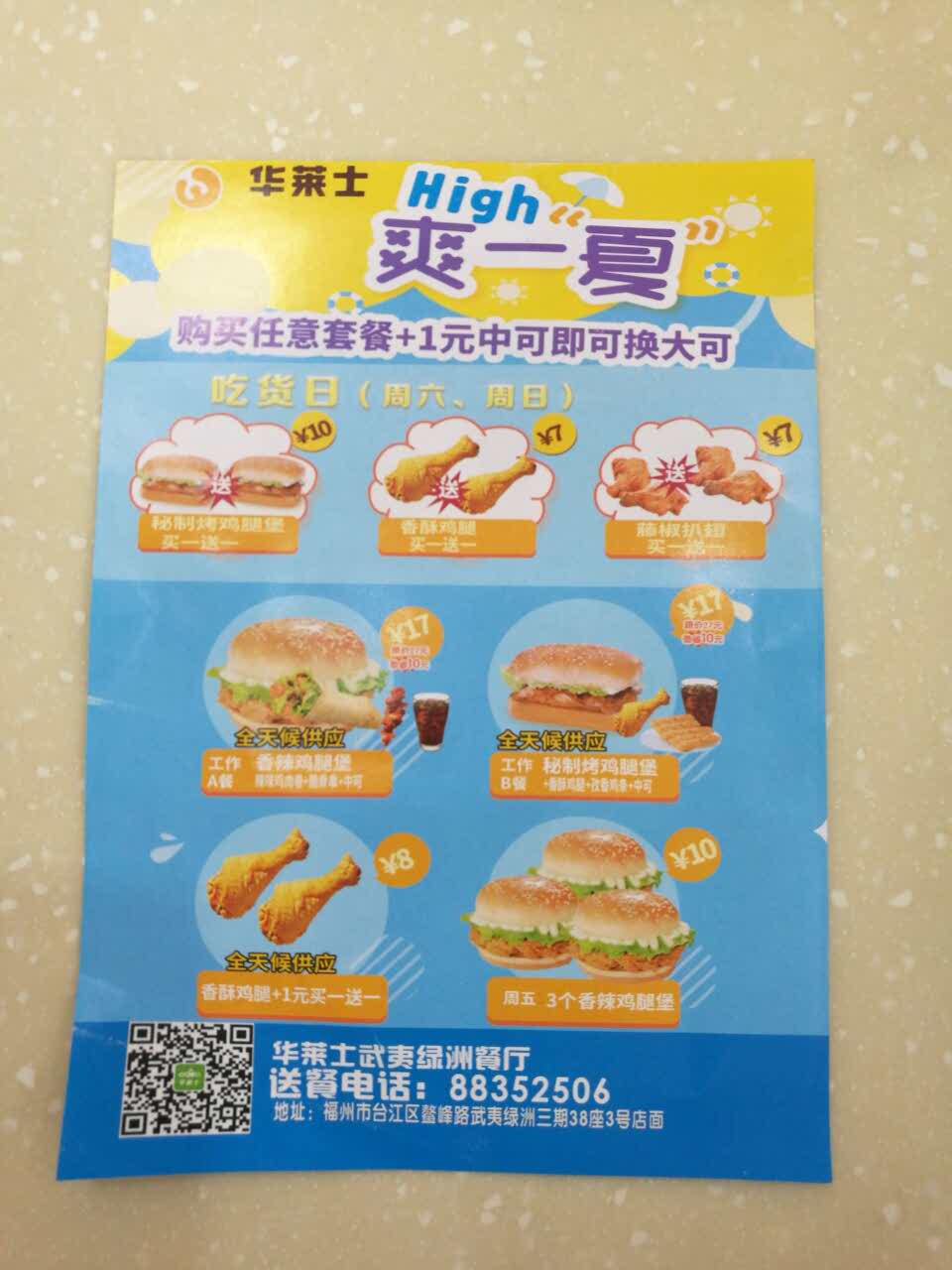 周末买一送一,划算,这几天午餐吃的都是华莱士