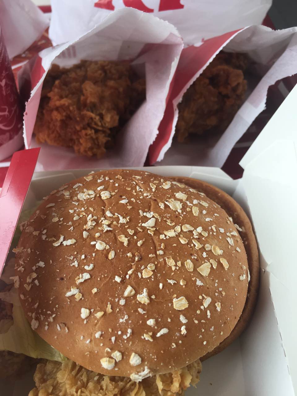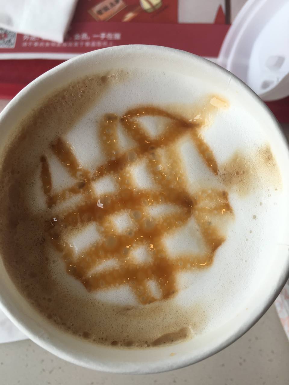新的口味焦糖拿铁,味道特别好很香;炸鸡脆脆的微辣好吃,