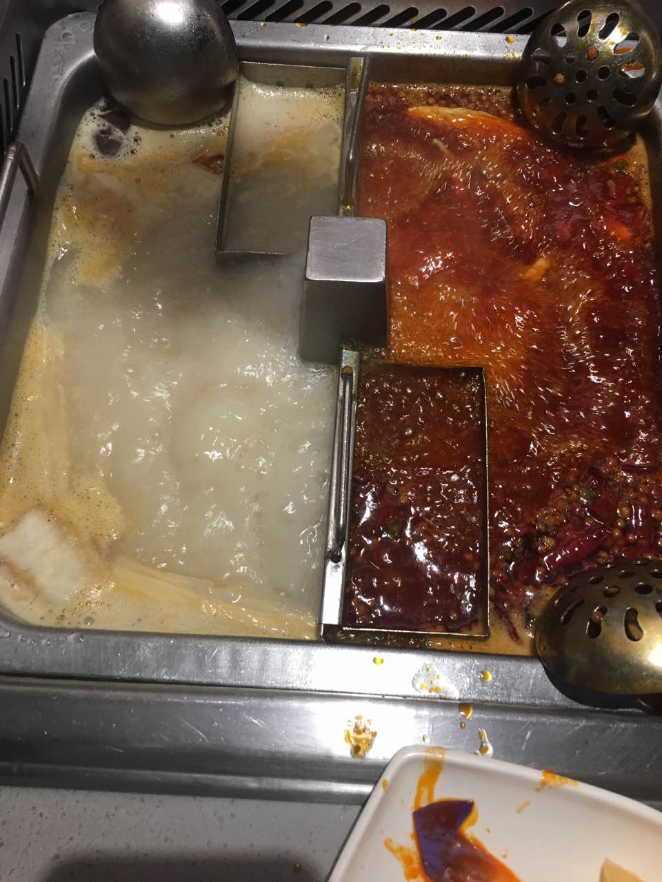 今天吃撑了。服务还是一流记得第一次吃海底捞是6年前的,被服务态度惊呆了,太好了,所以每次想吃点火锅就吃它家,今天食肉了,哈哈,第一次两个人吃400多块,之前都是人均150最多了!今天吃撑了。服务还是一流