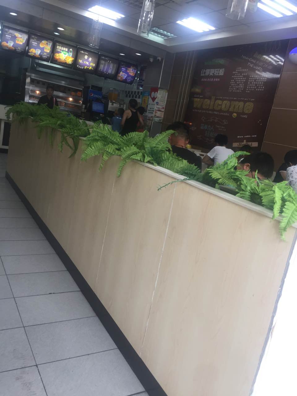 空调开了跟没开一样,点的吃的都是炸出来好一会儿了,都凉了,可乐让加冰 看都不看说加了冰,忽悠谁啊。番茄酱过期几年了吧?那是番茄酱?还有座位 找了半天 本来座位是多,被你们一合并显得非常挤,还不如单个座位放。而且大多数都是俩人一个人来吃 弄那么多四人座位,没什么用,中间那么大位置,只放了三个位置? 也是醉了,本来火车站客流量就多,没位置有的人进来一看没位置就溜了。