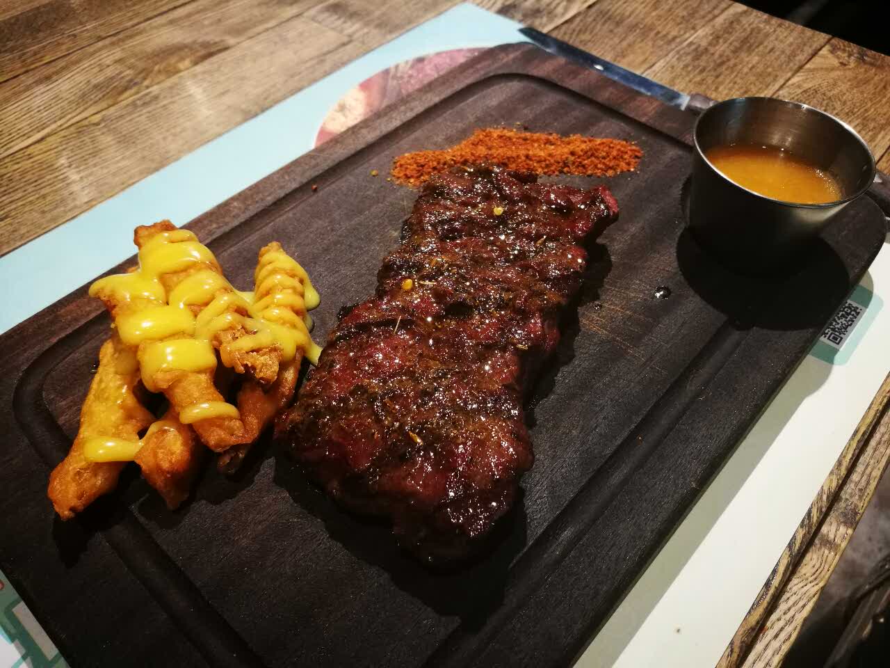这家牛排的肉质很不错,吃的是雪花牛排,厚,肉质嫩!自助餐品种挺多,性价比高,推荐!