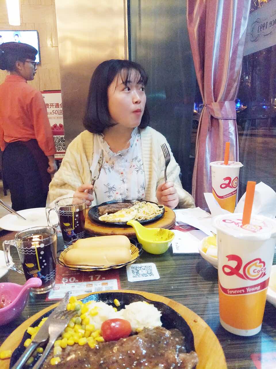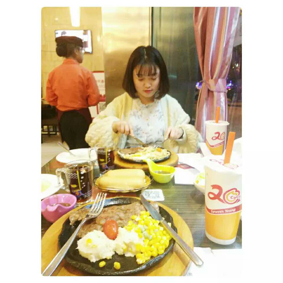 推荐我们2人吃的牛排 味道棒棒的(^_^)我和我朋友要的牛排是五分熟 吃起来像是全熟一样 可能是因为是铁板的原因吧!这个地方不错 离我们酒店近 因为晚上不想照相 下面的照片是我朋友!推荐我们2人吃的牛排 味道棒棒的(^_^)