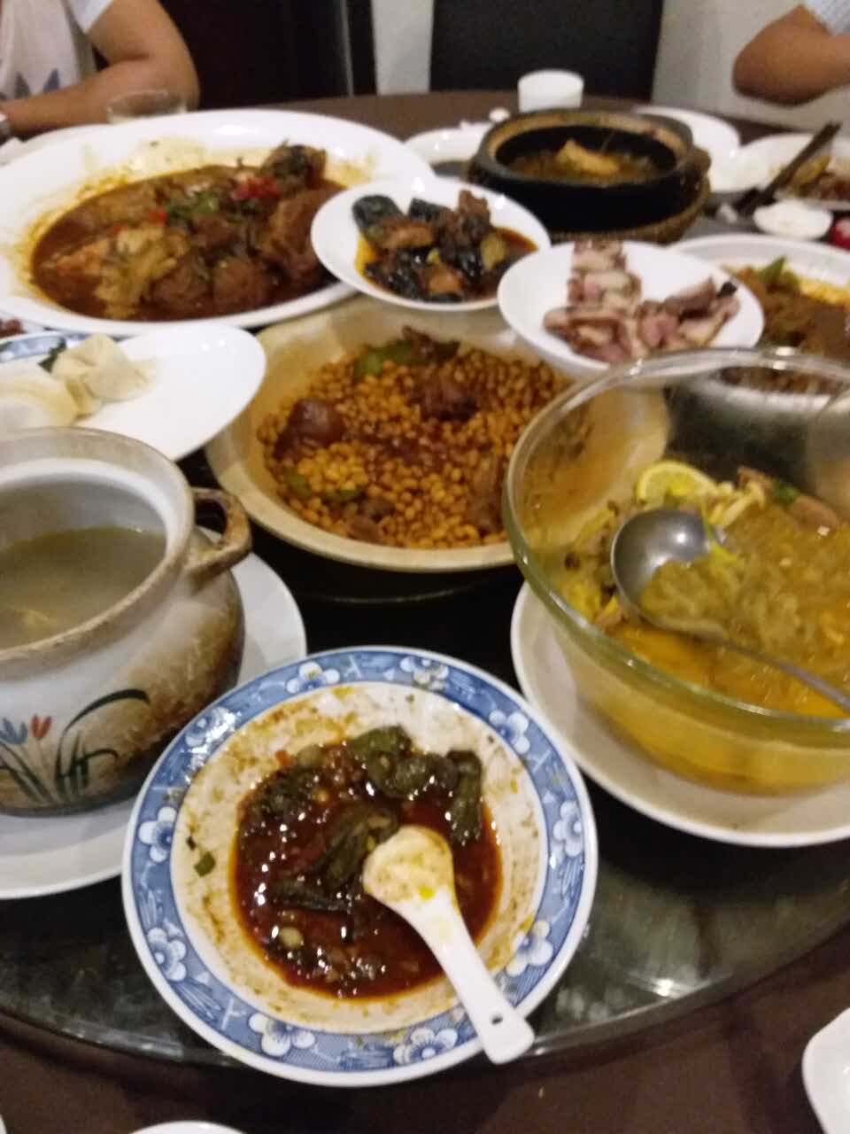 环境还可以,菜品分量蛮多10个人吃好后还剩这么多。