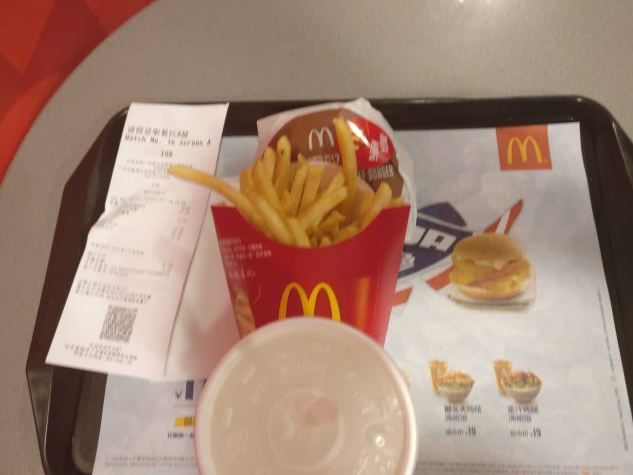 很好,吃了双层牛堡雪碧和中薯条,没有要芥末酱要了蕃茄酱!
