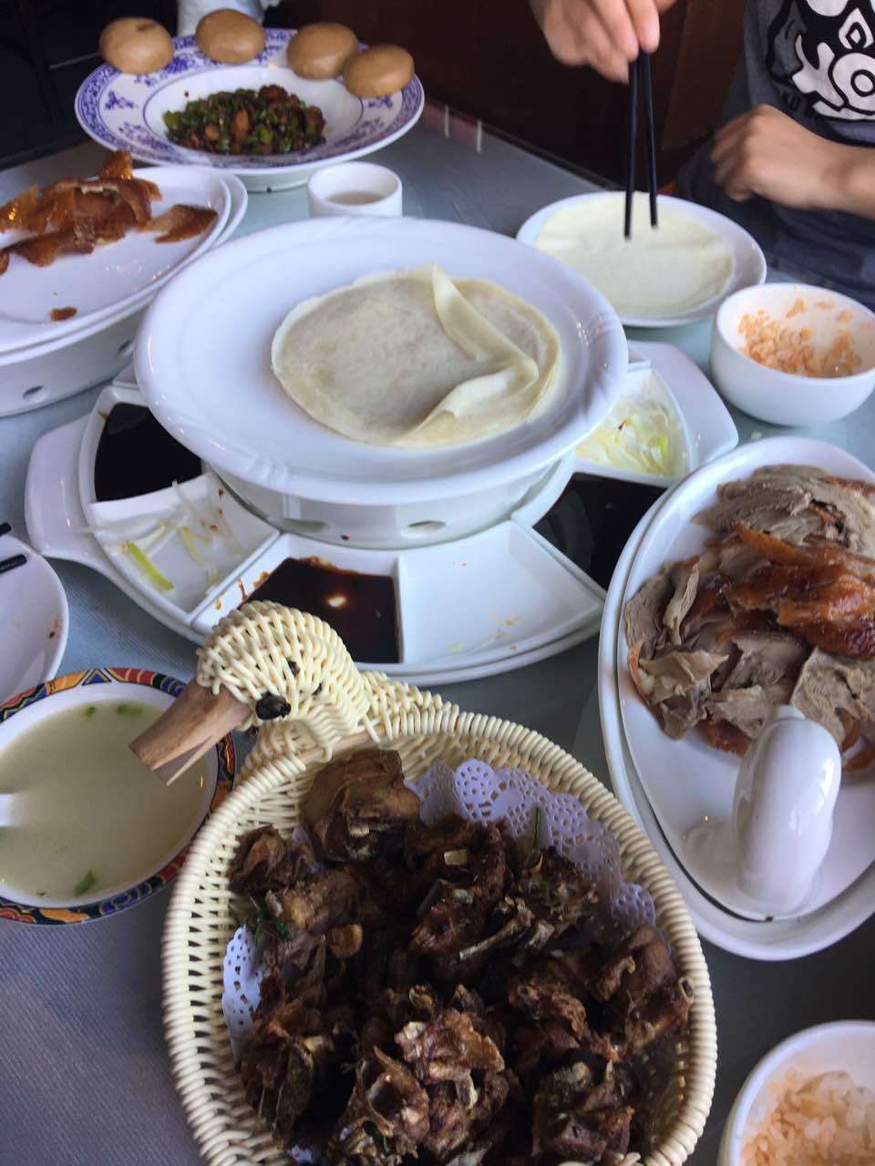 鸭宝分量小了,米饭叫了3次才上来,烤鸭也没有原来好吃了,哎无奈