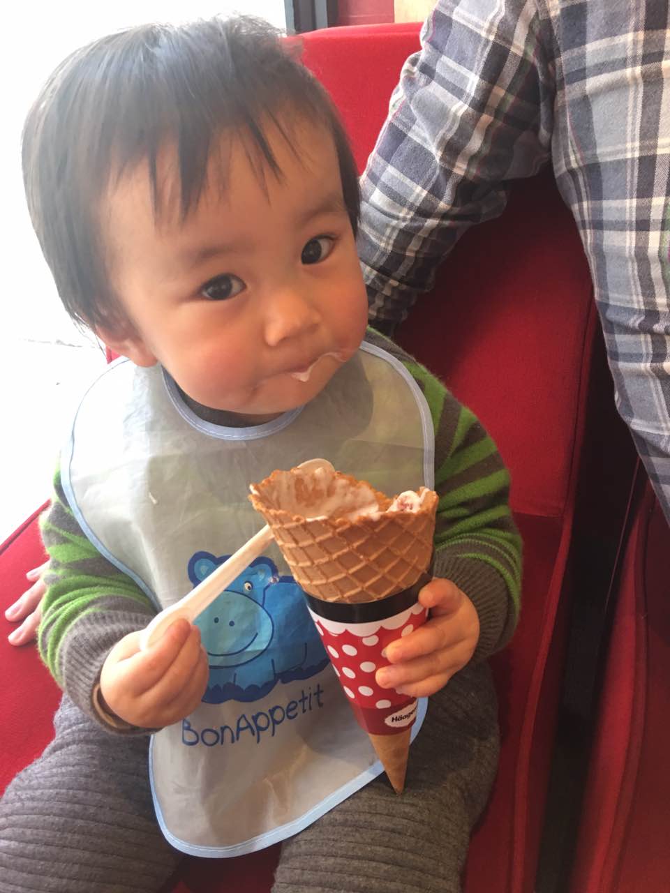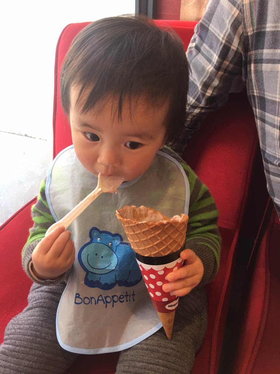 店铺挺大的,服务员比较多,服务周到,给女儿点了个甜筒,非常喜欢吃,小嘴巴一直没停下来过。