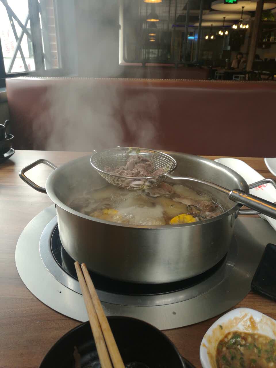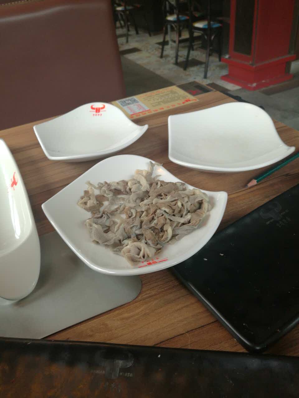 中午路过拔草,到店人不多,点了招牌锅底,上菜挺快的。首先说说牛肉,嫩肉,口感不错,确实嫩嫩的,一烫即食,赞的,另外吊龙也挺不错的。其次,黑毛肚,上盆后看上去就没啥胃口了。牛肉丸还是挺有嚼劲的,可以没有生牛肉丸了,只好点了熟的。冬瓜片有点小,香菇还是很新鲜的。饮料泰椰还是很好喝的,我挺喜欢喝的一种椰汁。