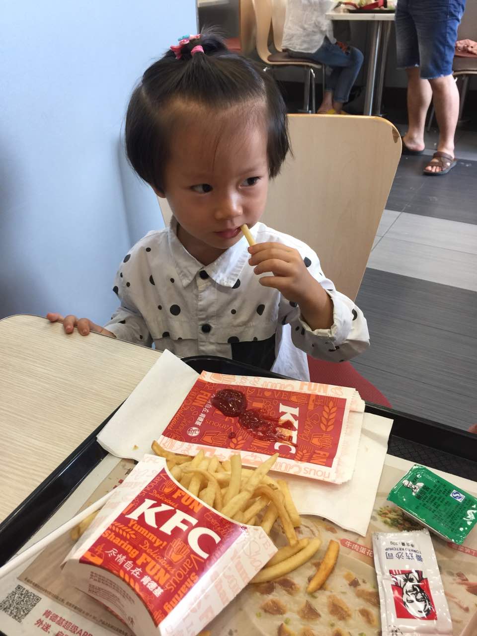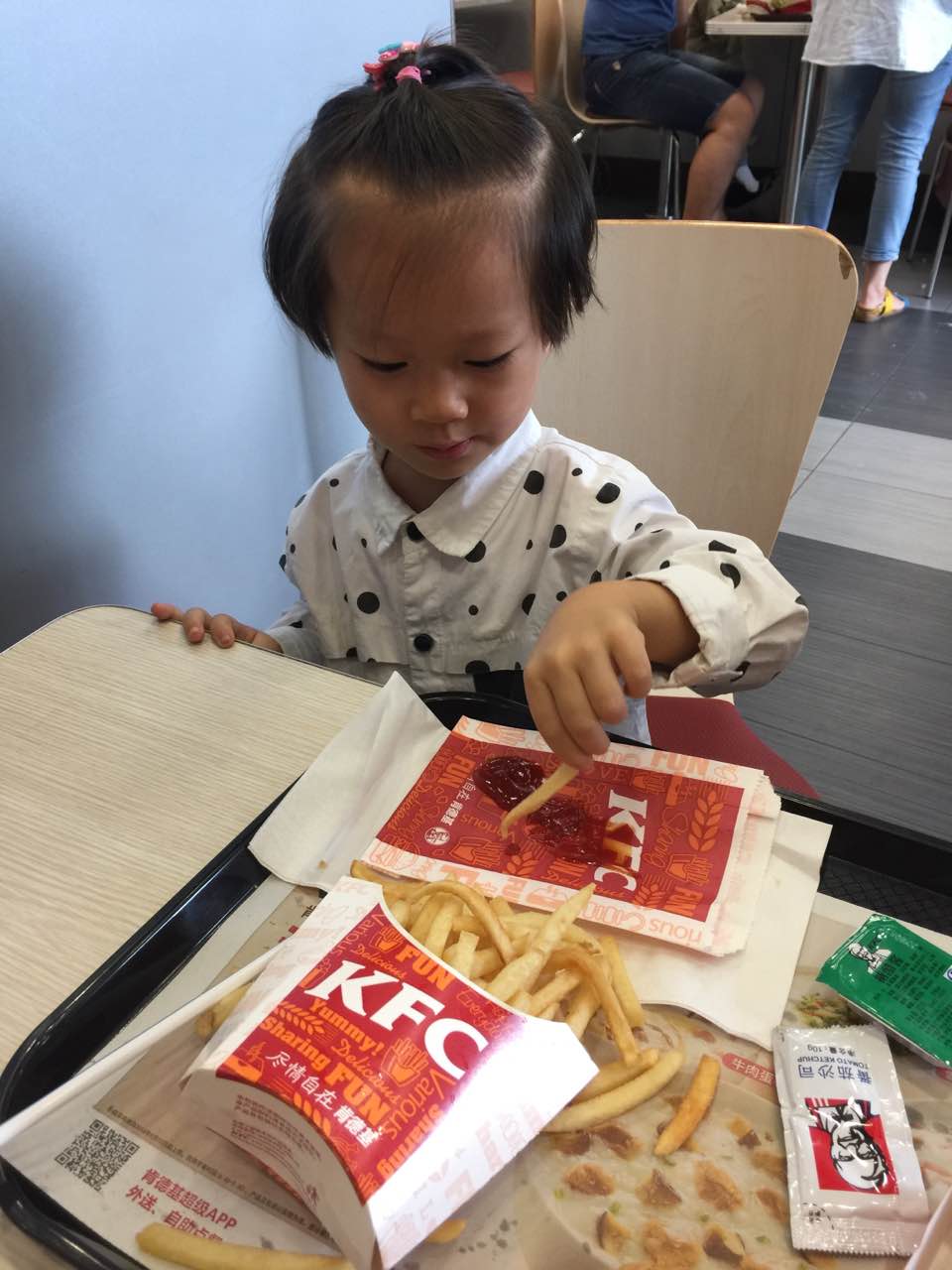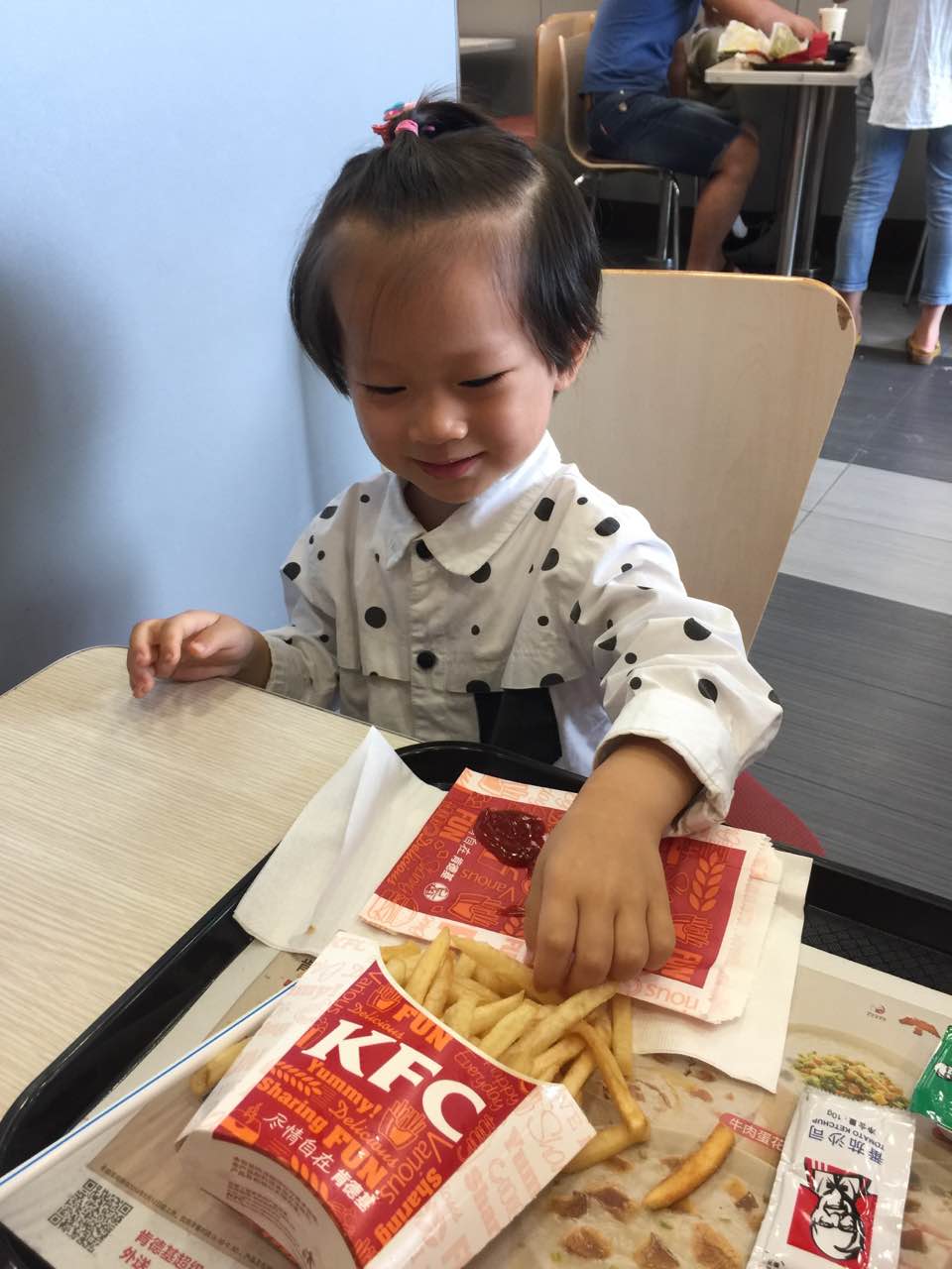 每次就给她来一点点薯条,就开心得很…孩子太容易满足了…真棒
