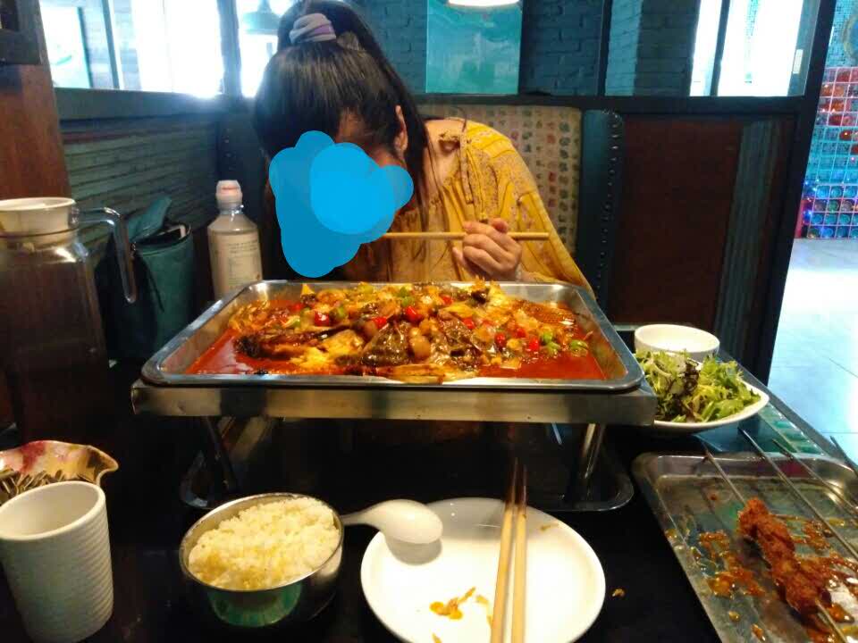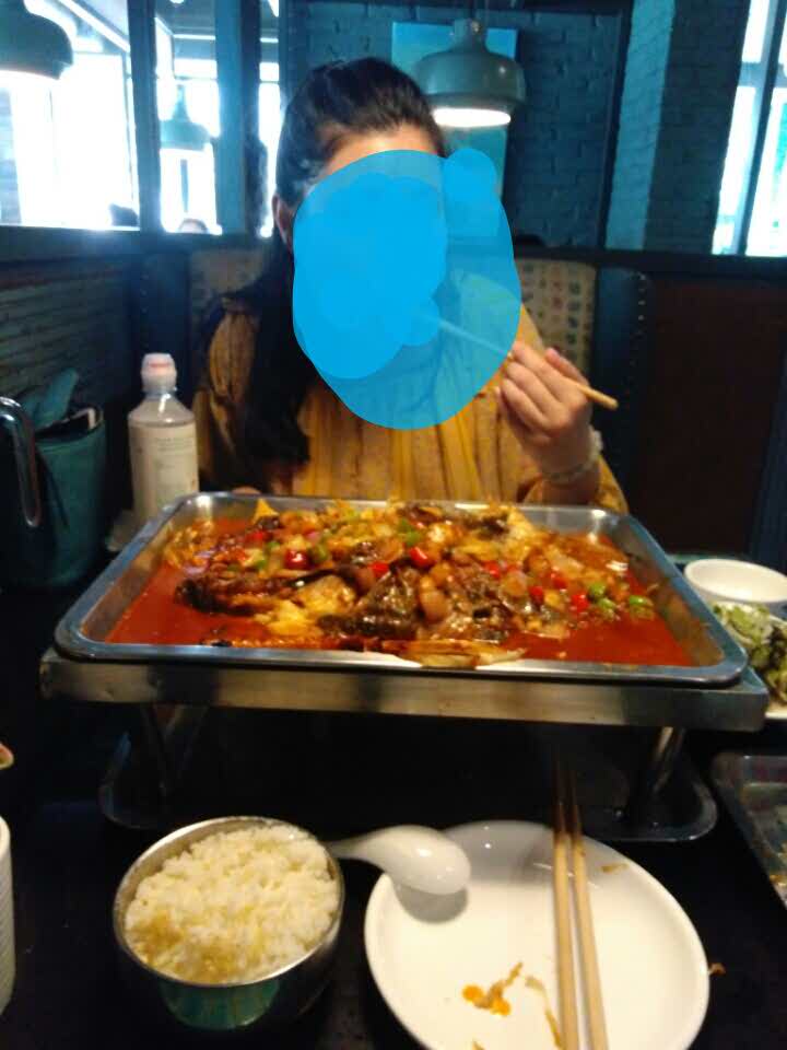 鱼刺很少,就餐环境还不错,点的蒜香的,太辣的吃不来,蒜香是微辣的,也挺不错,烤鱼上有一些洋葱和...