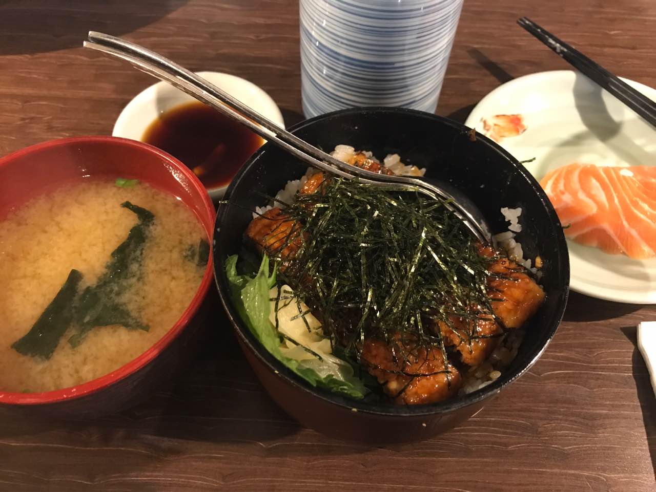 鳗鱼饭很好吃 还有烤虾 烤扇贝 三文鱼也蛮新鲜 服务态度不错