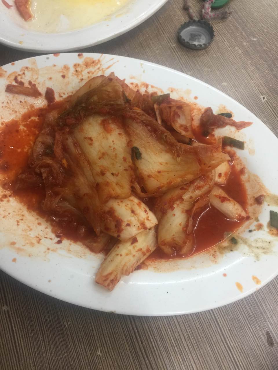 刚一进门,心就凉了半截,屋子又脏又小,也就六七张桌,三张桌子对着门口的风口,一张桌挨着厕所的边上,本想不吃走人,但转念一想,一般埋汰馆都是有独特风味的,所以三人落座点了几个店家推荐的拌菜和烤肉。吃到一半心就完全凉了……原以为环境脏差味道会好,结果这家店根本不按套路办事,菜品不仅毫无特色而且既不新鲜也不好吃。辣白菜和石锅拌饭简直是我三十几年来吃过的最差的没有之一(见图片)辣白菜很难吃全是大白菜梆子而且也不怎么切,小的有手指大,大片的有手掌大…拌饭里不知道那样食材是坏的,味道搜了,吃了几口一开始以为是独特味道?后来大家都品尝两口一致断定是有什么的东西变质了。告诉服务员拌饭里有食材是变质的,服务员只是哦了一声…无语…我只能自己祈祷不要拉肚子或者有什么问题了……烤肉很干,味道很一般,墨斗和推荐的几样拌菜也一般,杯子桌子那个脏啊,厕所挨着传菜的地方那个脏那个臭啊……一边吃饭一边飘来阵阵臭味…三个人花了170元,下次别说有人请就是有人倒找给我170元我也不去了……三十几年来吃过最差的烧烤店没有之一
