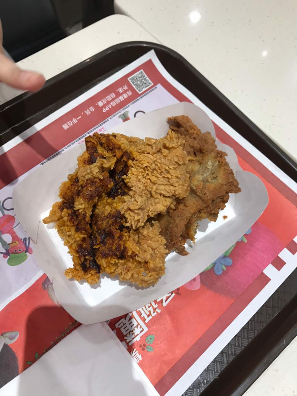 新的炸鸡还挺辣的,石榴派还是好评!不过这就是肯德基的地面卫生吗?
