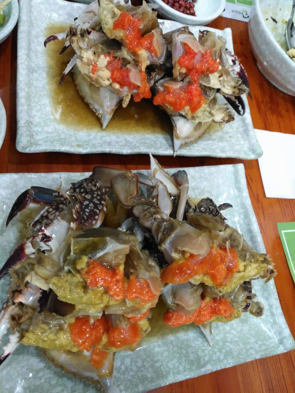 酱蟹很好吃,酱蟹拌饭也好吃。很下饭