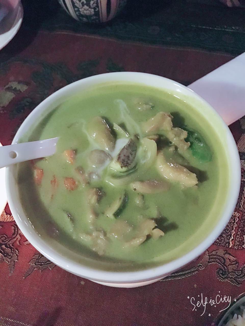 就是这个青菜不太好吃,感觉有点老,冬阴功汤和青咖喱鸡和虾饺都不错