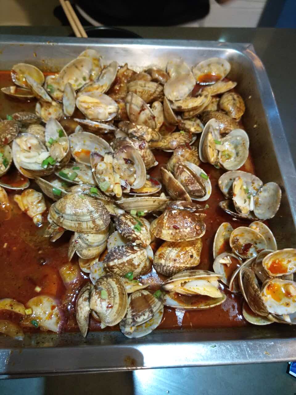 炒蚬子特别好吃,还很新鲜,烤鱼吃的是怪味的,感觉很不错,先辣后酸甜,很喜欢很好吃~