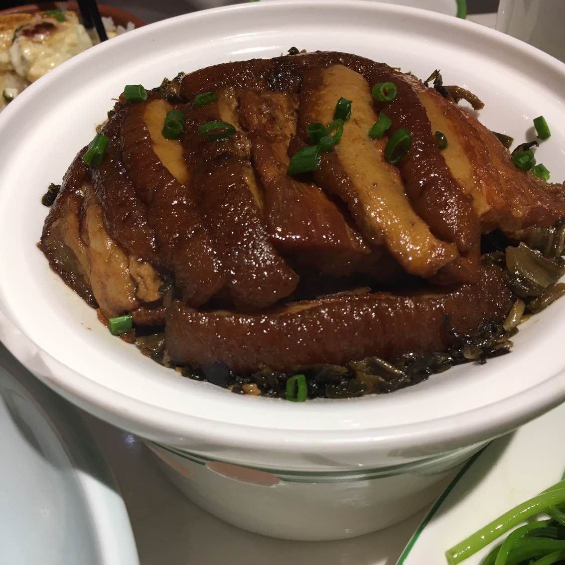 网友2017-05-04地瓜叶稍微有点老了不过还是可以的。菜干扣肉和酿豆腐的确在水平在线,扣肉肥而不腻很棒,豆腐也很滑嫩菜干扣肉和酿豆腐的确在水平在线,扣肉肥而不腻很棒,豆腐也很滑嫩。表面是焦的。地瓜叶稍微有点老了不过还是可以的。盐焗鸡肉有点柴,一般般。