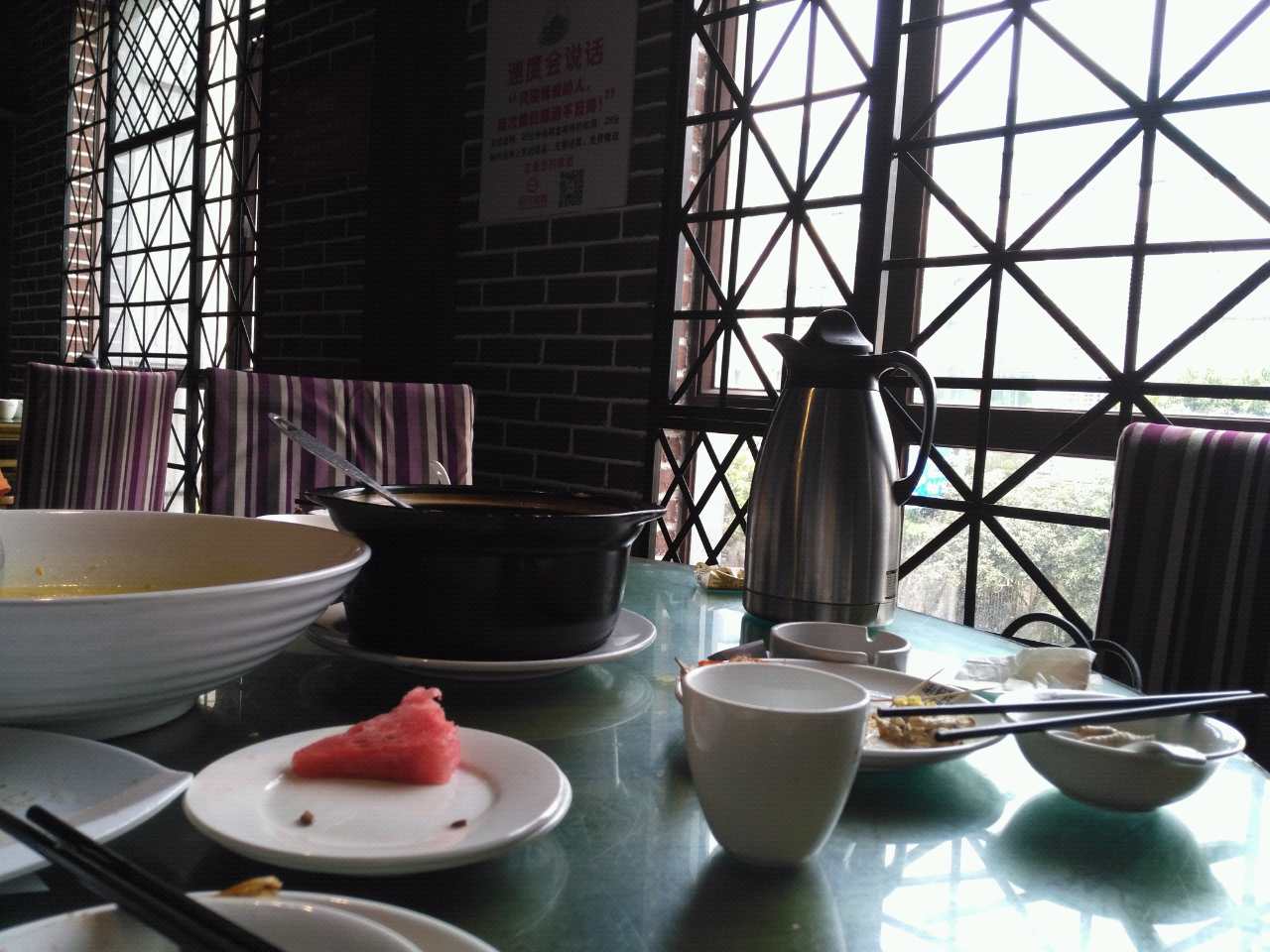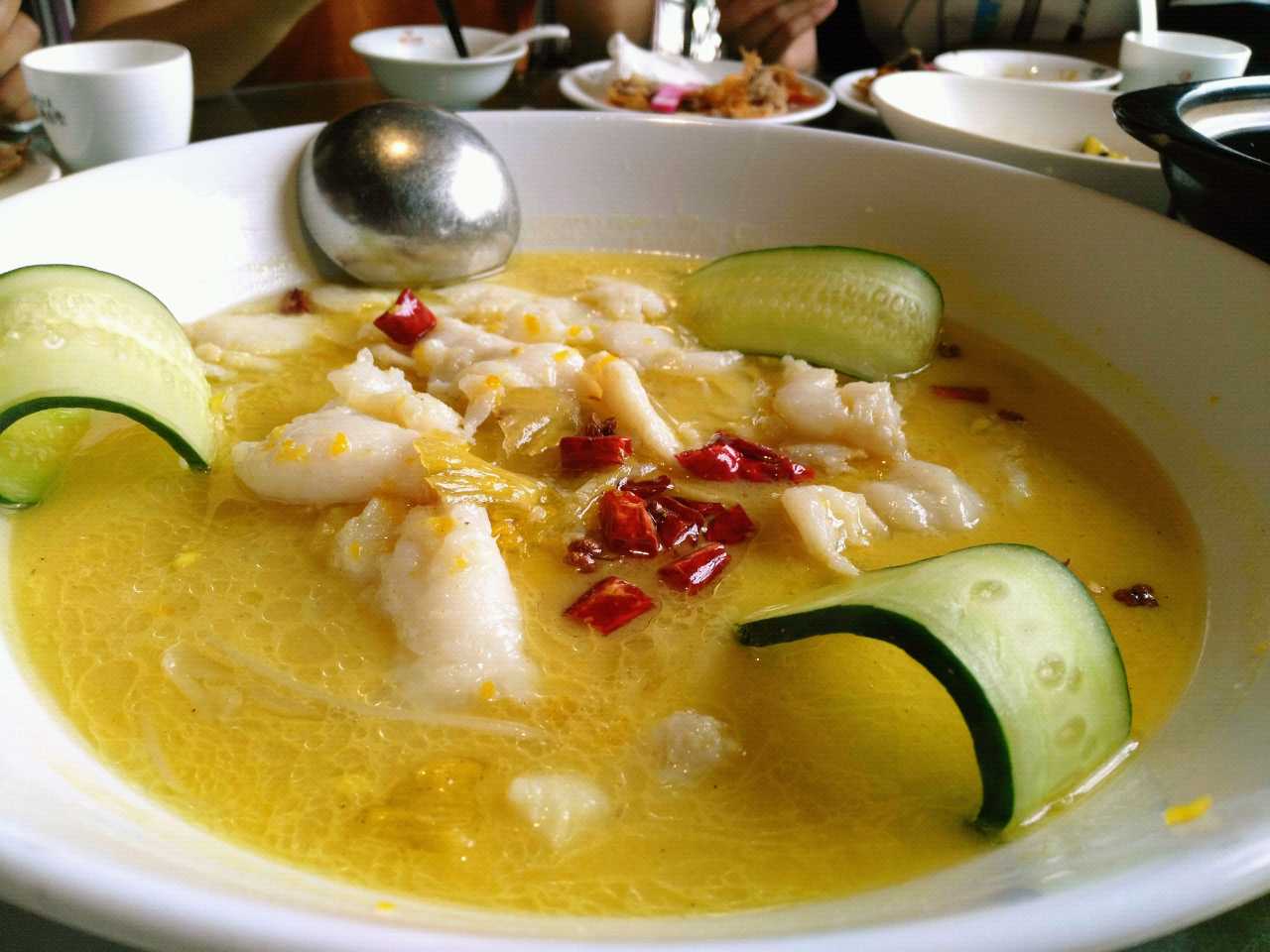 环境好。虽然人多的时候还是有点吵。但是整体装修环境很好。服务员挺多,但是也忙,看到就能叫到,态度也好。让撤盘也很配合。暂时没遇上哪位心情不好的。菜品不错。像酸汤肥牛,酸辣鱼辣的很清新够味。烧鹅也还行吧。就是汤不满意,虽然是清淡了,但是没有煲汤的感觉。可能是喝惯了广式煲汤。。那个橙汁山药和面包诱惑很赞。特别适合夏天。。虾也大。够味。扇贝好小。不过价格也是很实惠的。不过碗筷的卫生加强一下。摆的时候起码看一下。遇上个脏碗会很让人没胃口的。