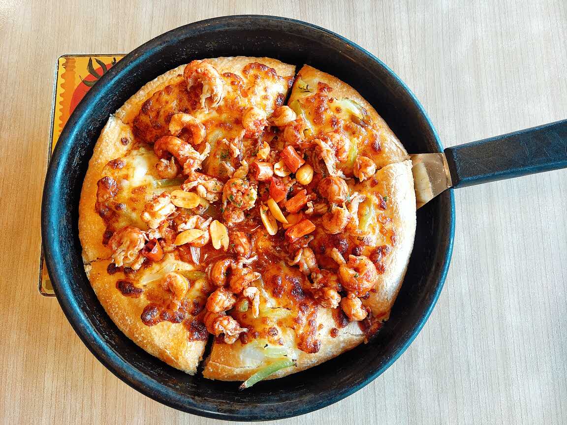 和妹子去办事,都没有吃中午饭。从昨晚上就想吃披萨了,特地跑来吃这款披萨。味道很好吃,就是点小吃的时候被告知好多小吃都卖完了。表示特别伤心,但是小吃都吃完了,披萨吃不完了,叫来服务妹子打包了。也是可爱的一个小妹子