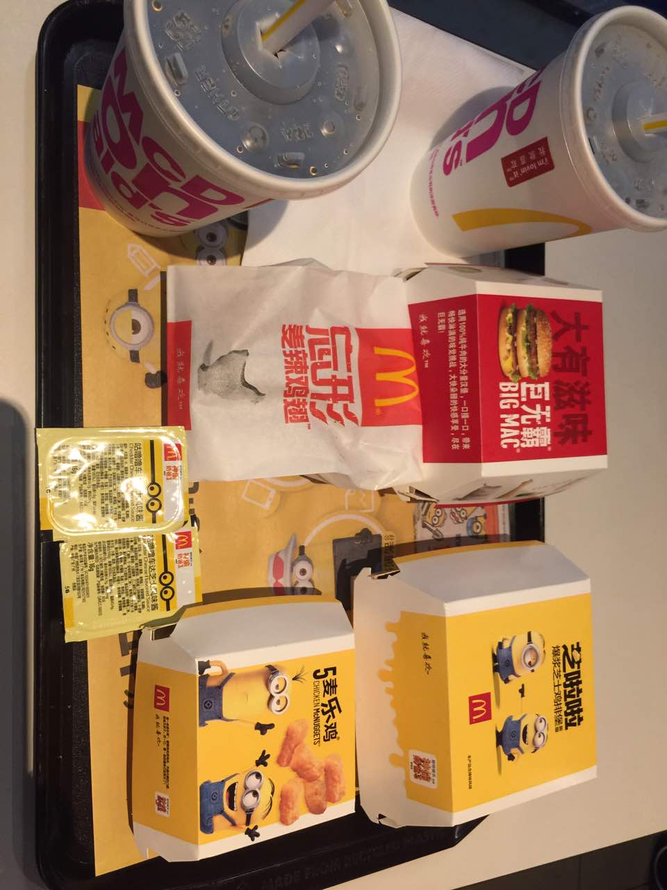 麦当劳忠实粉丝,小黄人不仅解决了芝士梦,还让更多小朋友吃麦当劳。美中不足:1、餐厅桌面较整洁,但地面粘到下不去脚。2、希望多推出如10元超级鸡腿堡和巨无霸活动。让不爱吃、不常吃的顾客看到麦当劳的变化,让爱吃的铁粉从一周一餐变为一日一餐。毕竟去了不止会吃10元汉堡,单点薯条可乐和鸡翅必不可少,所以每人的总支出也不差哦。希望麦麦多考虑10元活动,既推广又赚钱,既圈粉又宣传。