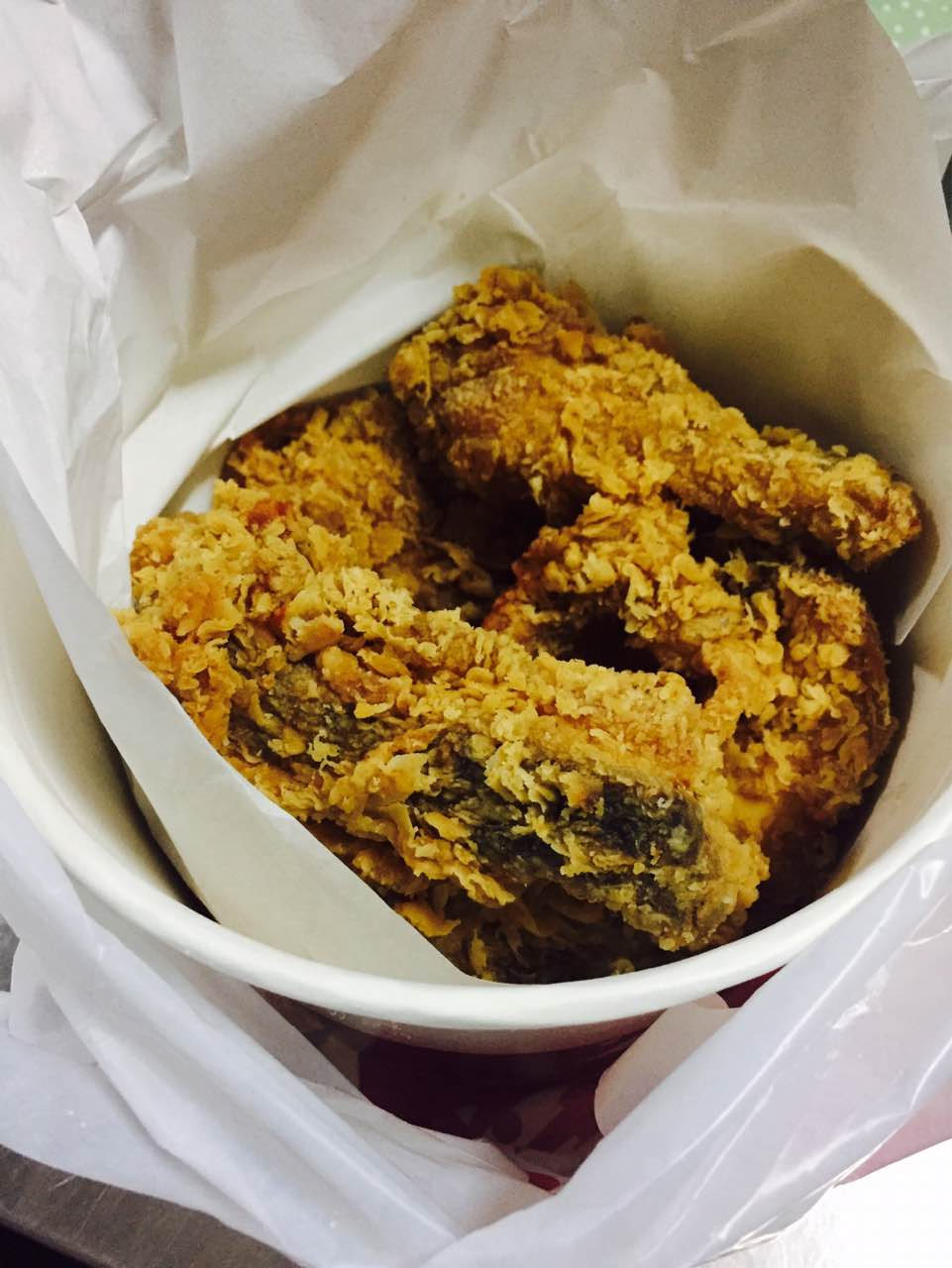 想要吮指原味鸡没有了,最后拿了5块藤椒的,没入味,鸡太柴太油了