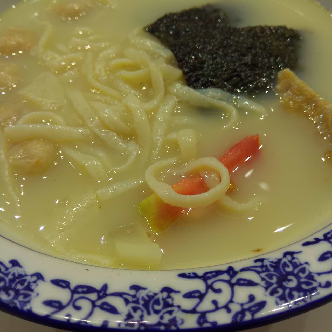 鱼面很劲道 鱼汤鲜纯 感觉也没有加很多味精 墨鱼条味道欠佳 口感有点怪像是吃蘑菇