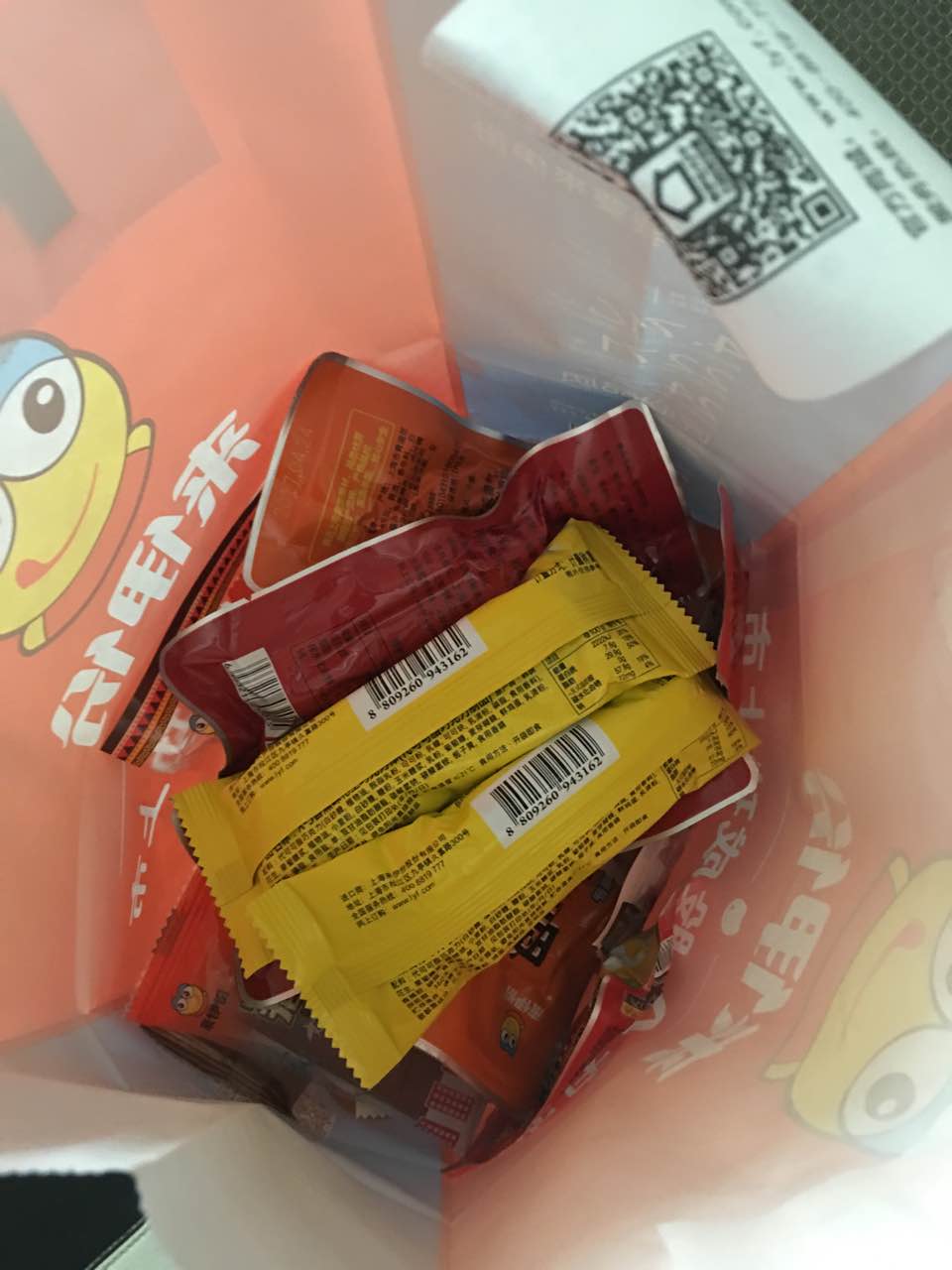 来伊份的小零食种类很多,每种买一点,刚好合适。猪肉脯是小朋友最爱
