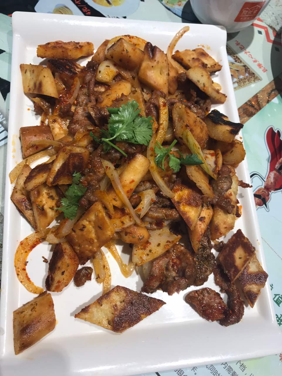...欢那种面上都沾上了土豆淀粉的沙质口感,微辣,特别好吃馕炒肉也挺好吃,脆脆的囊,羊肉口感却很清淡