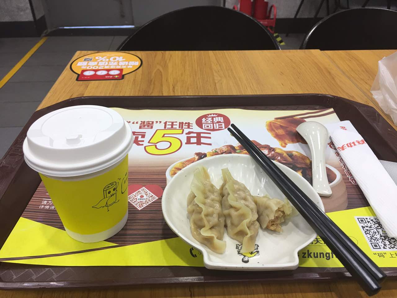 网友2017-07-29五元早餐 小杯豆浆加蒸饺 味道不错哦 服务员态度非常好 我带了杯子 帮我加满了热水五元早餐 小杯豆浆加蒸饺 味道不错哦 服务员态度非常好 我带了杯子 帮我加满了热水 。店内有廁所,嗯,很好。