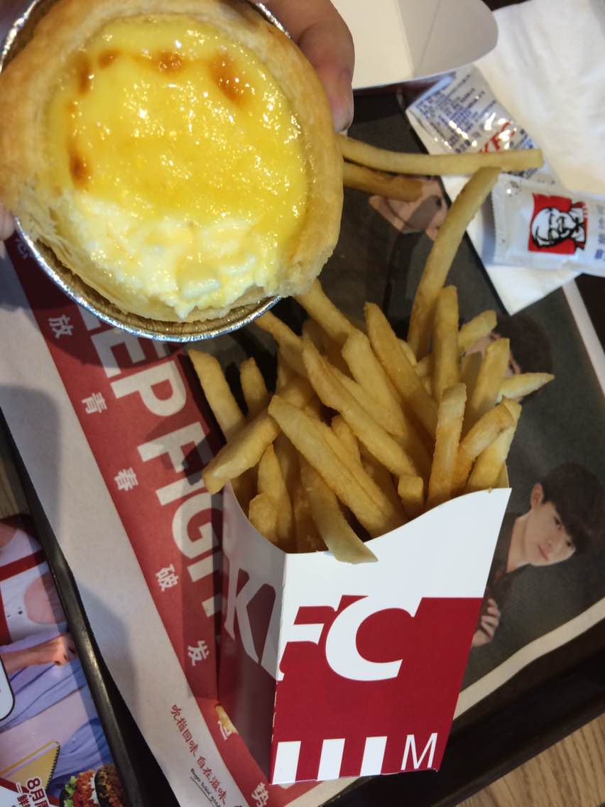 肯德基的蛋挞最喜欢了,超级好吃呀,还有薯条,完美
